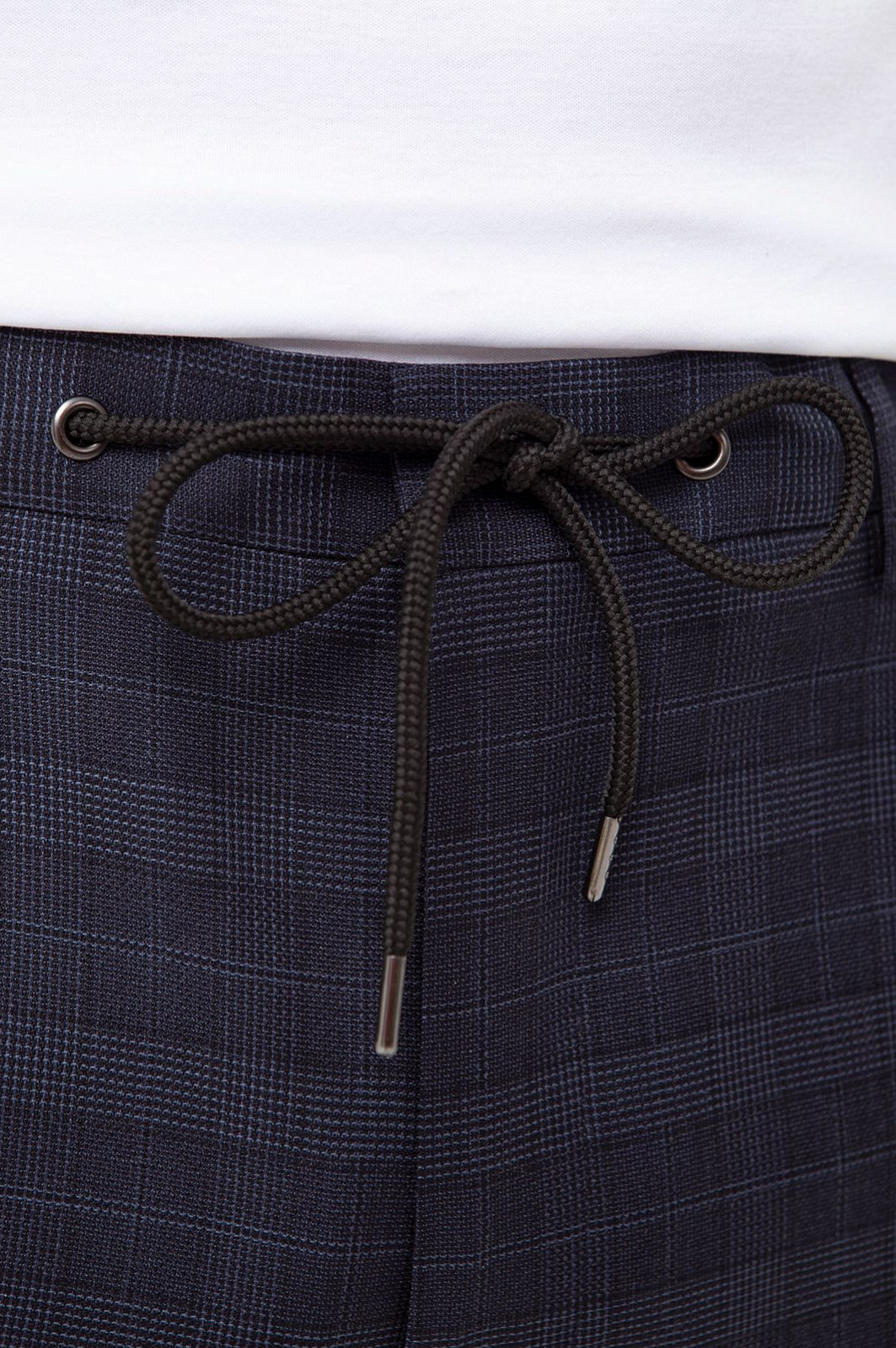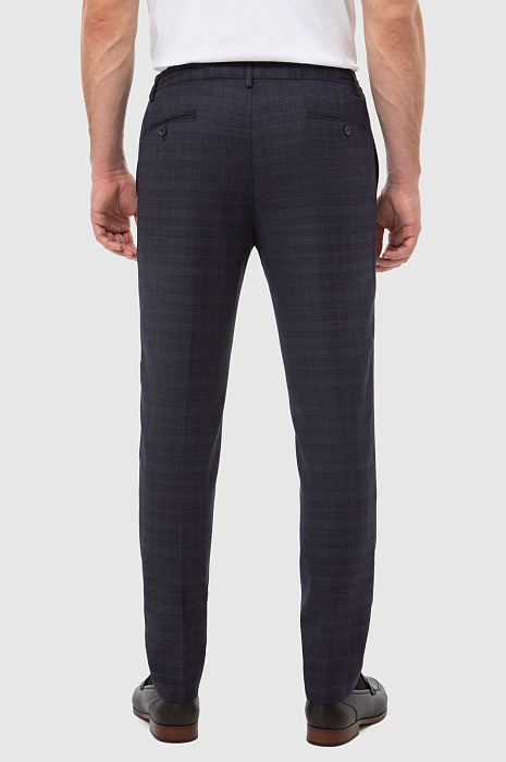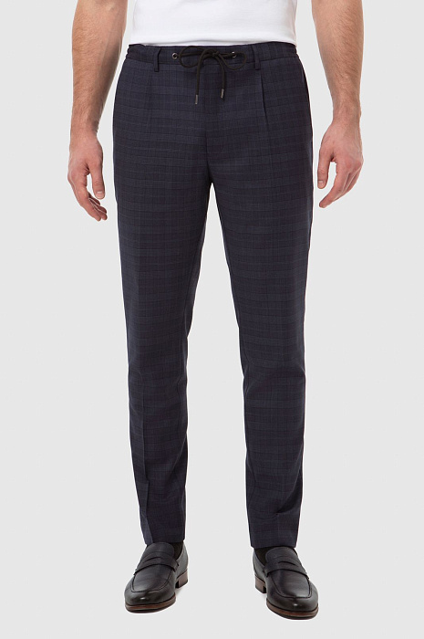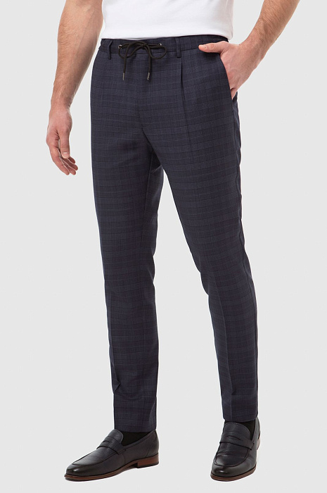 Брюки из шерсти в клетку на кулиске с водоотталкивающей обработкой, устойчивые к загрязнениям, цвет синий, цена 7 990 руб., код 267078 - купить в Самаре в интернет-магазине KANZLER