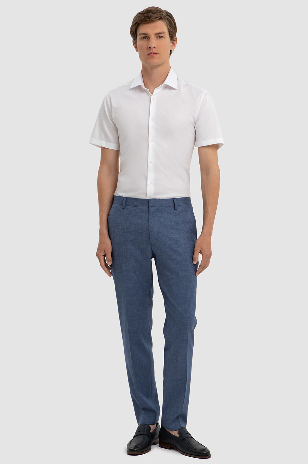 Брюки KANZLER благородного серо-синего оттенка из шерсти с водоотталкивающей обработкой — подлинная находка и универсальная вещь для делового гардероба. Модель сохраняет безупречный вид даже при очень плотном рабочем графике, когда после самолета нет времени заглянуть в отель. Стрелки, в сочетании с элегантным кроем, вытягивают силуэт. Дорогая благородная ткань, украшенная неброским рисунком «оконная рама», создана из тонкой премиальной шерсти Супер 120S. Благодаря особой водоотталкивающей обработке материала, брюки устойчивы к загрязнениям, капризам природы и подходят для ношения в любой сезон. Параметры модели: рост 191, 97-77-99 Размер на модели: 50