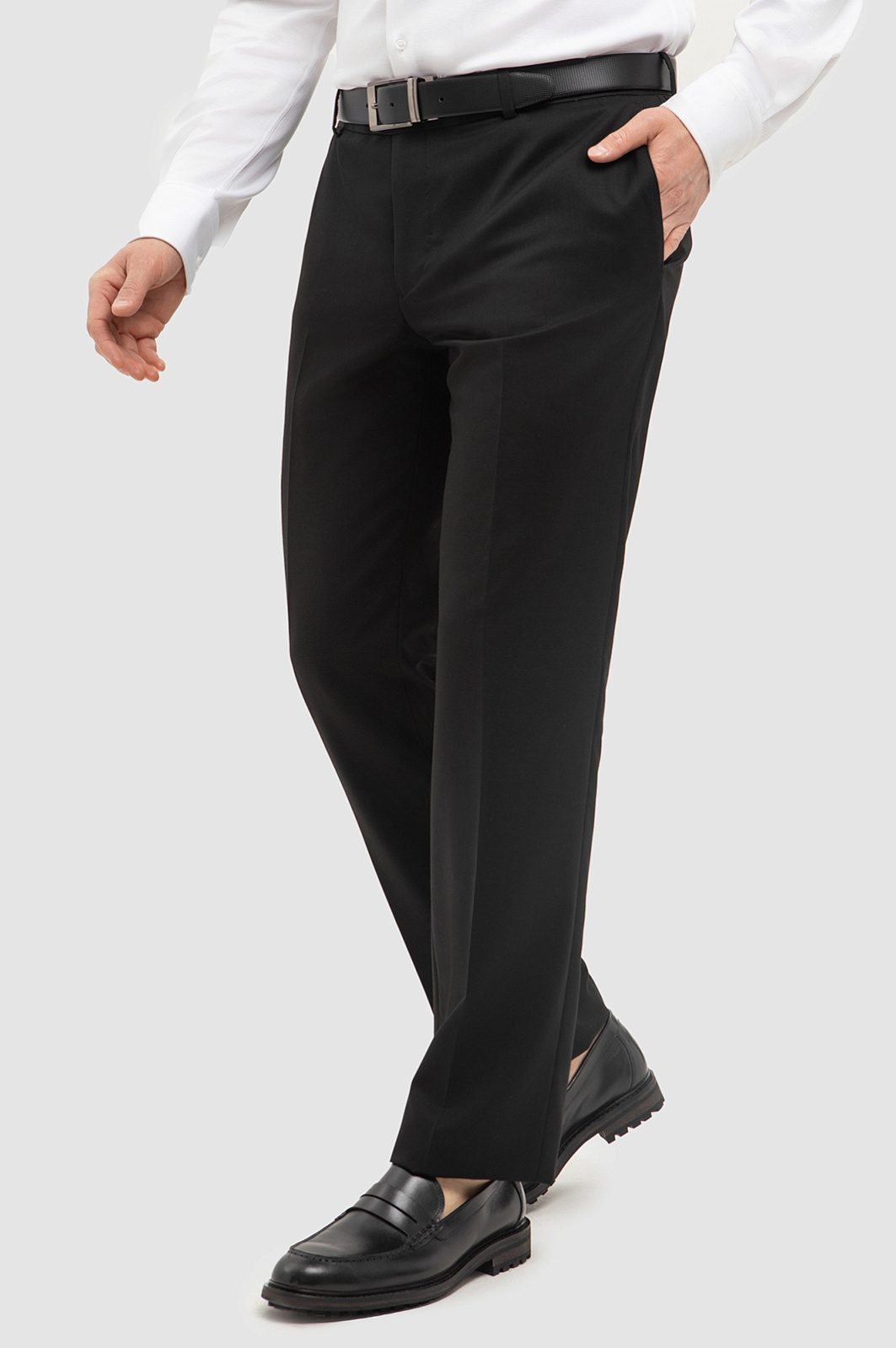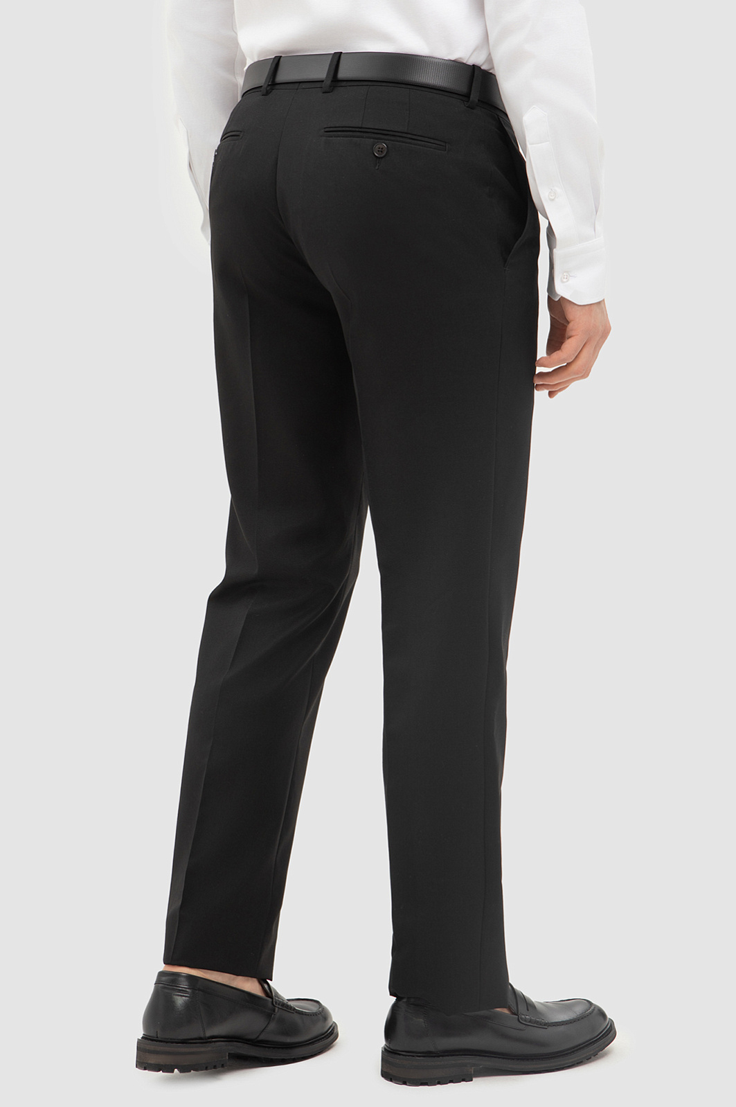 Черные брюки KANZLER со стрелками — выбор для функционального делового гардероба. Выполнены из высококачественной смесовой ткани (70% натуральная шерсть Супер 120S, 30% полиэстер). Нежная шерсть премиального качества обеспечивает комфорт и отличную воздухопроницаемость, а синтетические волокна добавляют износостойкость и помогают брюкам сохранять форму в течение дня и после стирок. Модель приталенного силуэта подчеркивает фигуру, а черный цвет придает изделию строгий вид. В деловой обстановке модель прекрасно смотрится с белой рубашкой и классическим пиджаком, завершая профессиональный образ. Для менее формальных встреч можно дополнить брюки легким джемпером или поло. Независимо от трендов, классические черные брюки остаются неизменным символом классического мужского стиля. Параметры модели: рост 187, 100-81-97 Размер на модели: 50