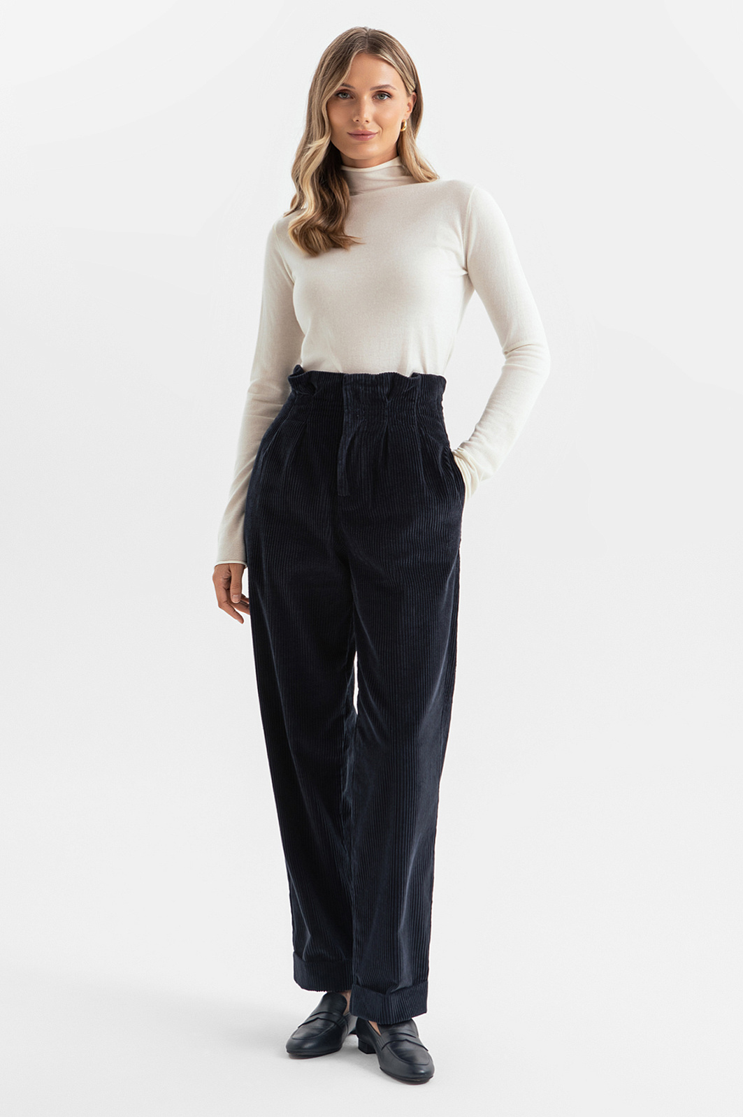 Брюки с защипами из вельвета