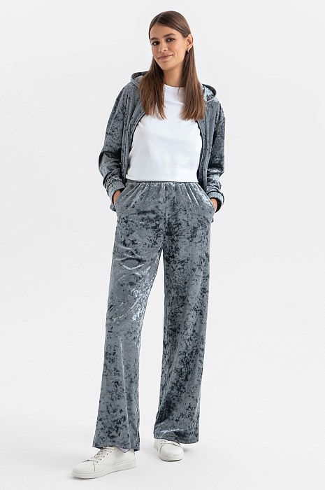 Серые бархатные джоггеры KANZLER – воплощение шика и элегантности. Неоднородная фактура с эффектом сияния делает эти брюки поистине уникальными: они легко трансформируются, встраиваясь как в повседневные образы, так и для особых случаев, добавляя облику яркости. Эластичный пояс обеспечивает идеальную посадку, а свободные брючины – динамичность и комфорт в каждом движении, какую бы активность вы ни выбрали: пробежка в парке, активный отдых за городом или вечеринка. Для создания цельного образа можно дополнить брюки толстовкой из такого же материала. Параметры модели: рост 175, 86-62-92 Размер на модели: S