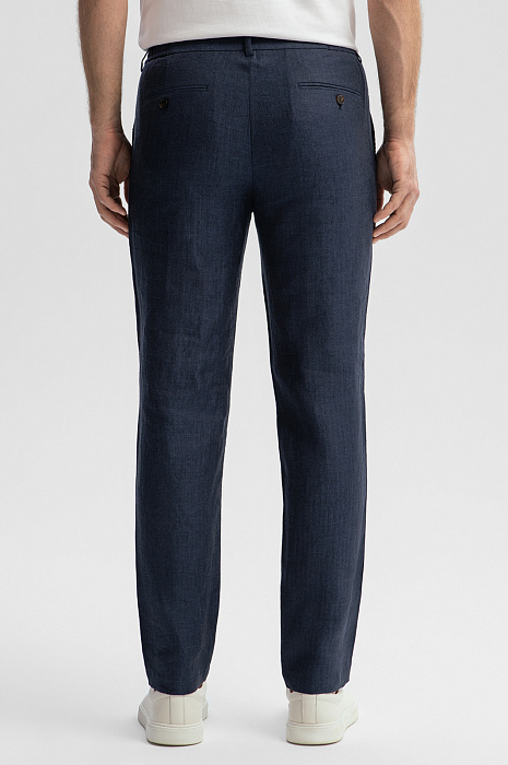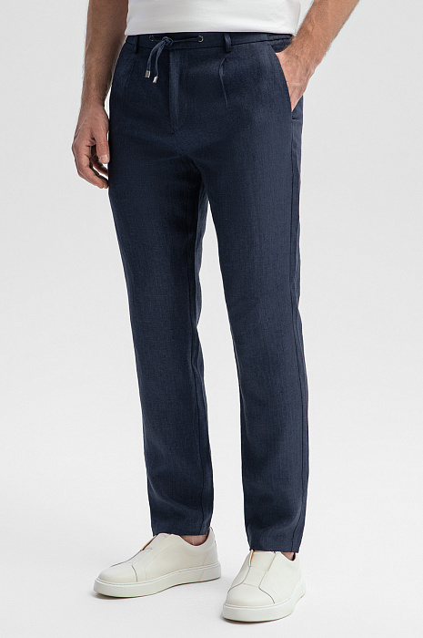 Брюки изо льна на кулиске, цвет синий, цена 10 392 руб., код 269075 - купить в Самаре в интернет-магазине KANZLER
