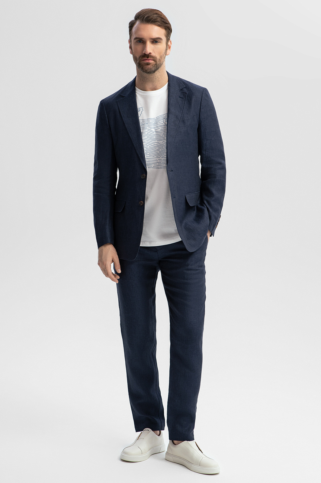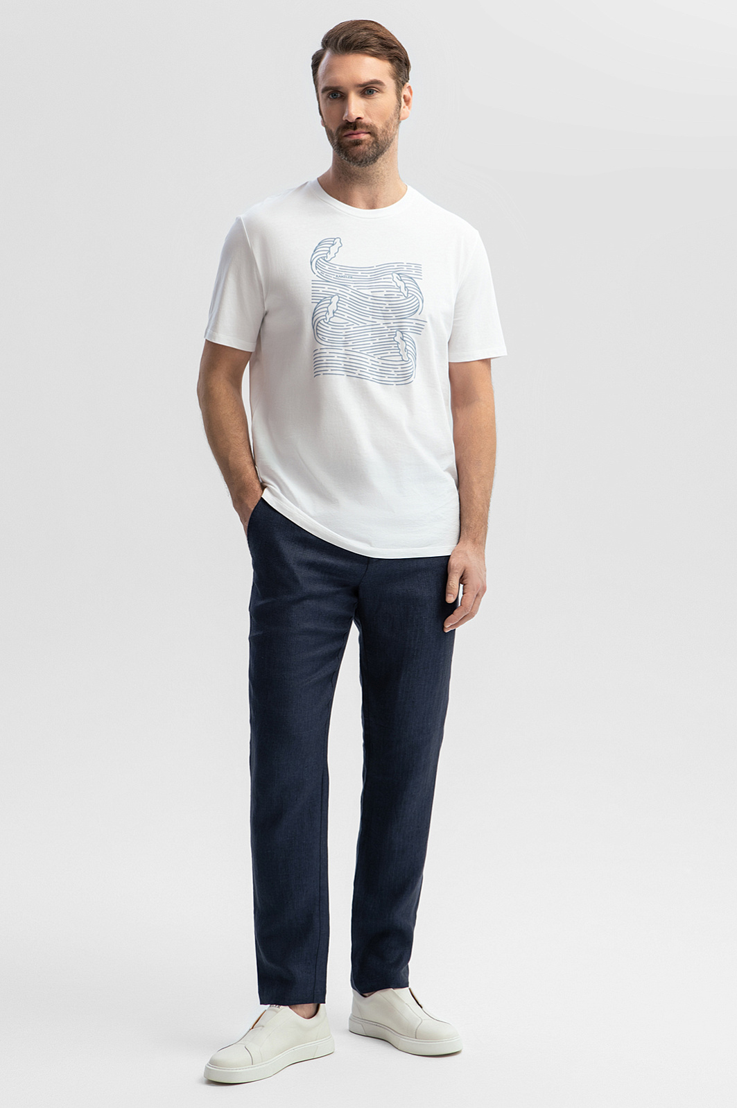 Стильные брюки KANZLER на кулиске глубокого синего цвета изо льна сделают летний отдых приятным и комфортным и сократят время на сборы. К ним легко подобрать верх — подойдет футболка или поло с укороченным рукавом. Прилегающий крой делает силуэт современным, спортивным и легким. Комфортную посадку обеспечивают небольшие защипы и кулиска, позволяющая регулировать объем талии. Чистый лен — прочный износоустойчивый материал, который будет великолепно выглядеть многие годы. Гладкие волокна льна хорошо пропускают воздух, не раздражают даже самую чувствительную кожу и создают в жару ощущение прохлады. Параметры модели: рост 189, 102-80-99 Размер на модели: 50