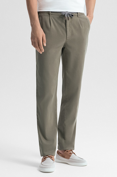 Брюки из тенсела и хлопка, цвет зеленый, цена 8 990 руб., код 269359 - купить в Самаре в интернет-магазине KANZLER