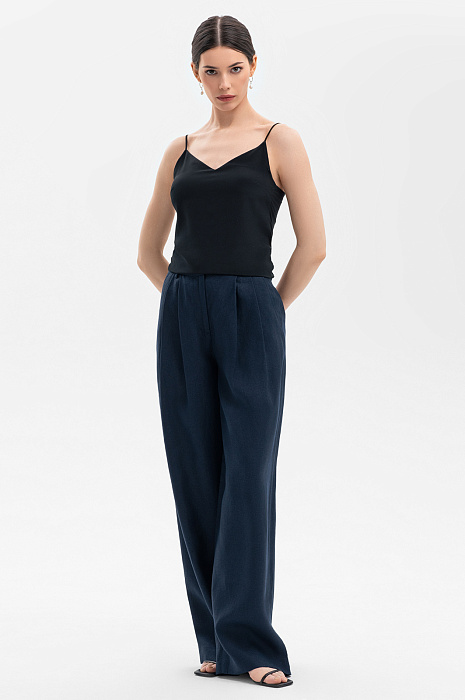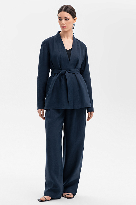 Брюки изо льна, цвет синий темный, цена 10 990 руб. - купить в интернет-магазине KANZLER