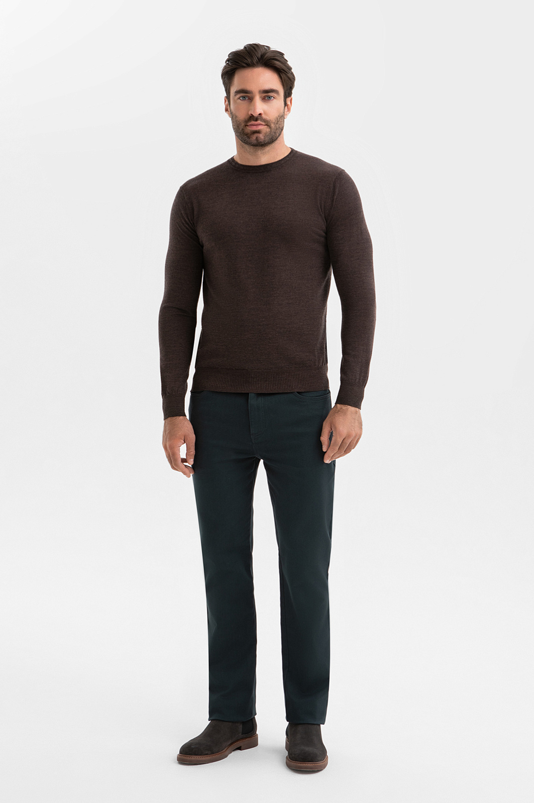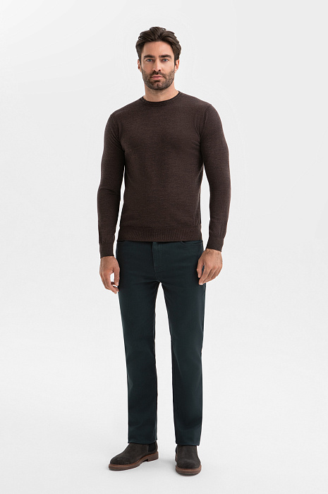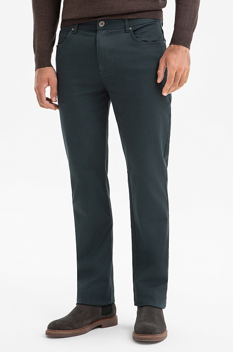 Универсальные комфортные брюки KANZLER серо-синего оттенка выполнены из мягкой, приятной к телу, прочной ткани. Модель имеет традиционный крой с характерными деталями — надежными швами и металлическими заклёпками, — придающий ей узнаваемый джинсовый характер, который гармонично вписывается в неформальные и удобные повседневные образы. Прямой силуэт обеспечивает удобную посадку и свободу движений. Плотная ткань на основе натурального гипоаллергенного хлопка и прочного воздухопроницаемого модала с добавлением эластана обеспечивает комфорт, сохранение формы и адаптацию к особенностям фигуры. Параметры модели: рост 192, 108-83-102 Размер на модели: 50