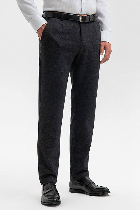 Неформальные офисные брюки KANZLER на кулиске в тёмно-сером оттенке — удачное сочетание делового стиля и повседневного комфорта. Подходящий выбор для тех, кто ценит эстетичный образ и ощущение свободы в течение дня. Пояс с кулиской обеспечивает индивидуальную посадку и удобство. Прилегающий крой подчёркивает силуэт и визуально вытягивает фигуру. Практичный долговечный функциональный смесовой материал (50% нейлон, 30% полиэстер, 18% район) устойчив к сминанию, хорошо держит форму, пропускает воздух и приятен на ощупь. Параметры модели: рост 189, 102-80-99 Размер на модели: 50
