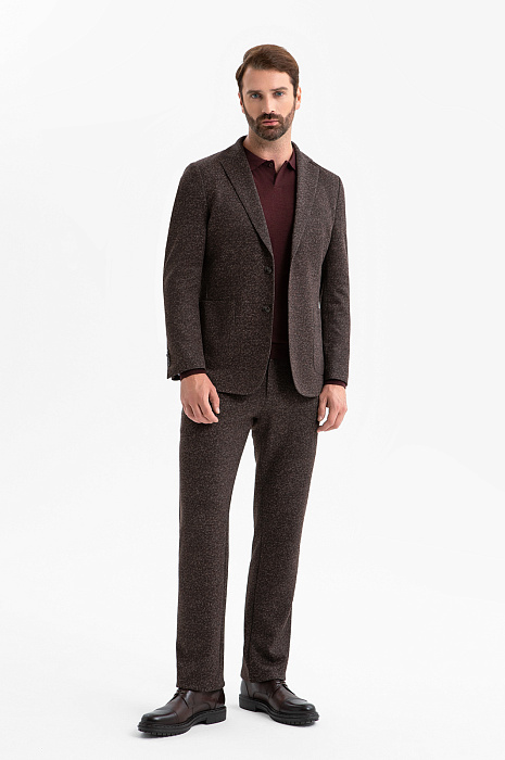 Брюки KANZLER на кулиске коричневого оттенка с меланжевым эффектом — идеальное сочетание современного силуэта и непринуждённого комфорта. Приталенный крой подчёркивает линии фигуры, создавая аккуратный современный образ, а регулируемая кулиска на поясе обеспечивает идеальную посадку. Меланжевый эффект добавляет ткани глубины и благородства. Инновационный материал, произведённый из современных синтетических и натуральных волокон, держит форму и адаптируется к индивидуальным особенностям фигуры. Благодаря добавлению хлопка ткань хорошо пропускает воздух и поддерживает приятную для тела температуру. Прочная гладкая подкладка из полиэстера и хлопка обеспечивает комфорт при надевании. Параметры модели: рост 189, 102-80-99 Размер на модели: 50
