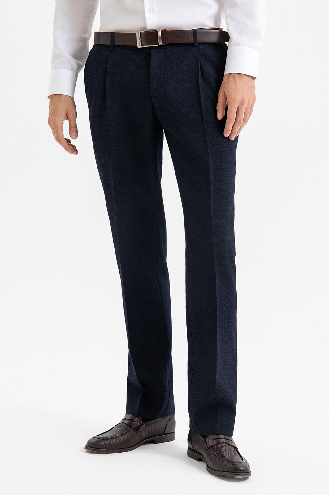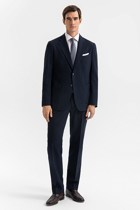 Элегантные темно-синие брюки KANZLER из шерсти Супер 120s — воплощение современной классики. Модель уместна на деловых встречах, торжествах и в офисе — особенно, если статус обязывает. Кулиска на поясе и защипы обеспечивают комфортную посадку и корректируют силуэт, а чёткие стрелки, в сочетании с умеренно прилегающим силуэтом, визуально вытягивают линию ног. Дорогая фактурная ткань из шерсти Супер 120s отличается особой тонкостью волокна, что делает её гладкой и невероятно приятной к телу. Натуральный благородный материал хорошо дышит, адаптируется к температуре и смотрится роскошно. Эластан в составе (3%) служит для сохранения формы, а гладкая прочная подкладка отвечает за комфорт в течение дня. Параметры модели: рост 192, 101-76-97 Размер на модели: 50