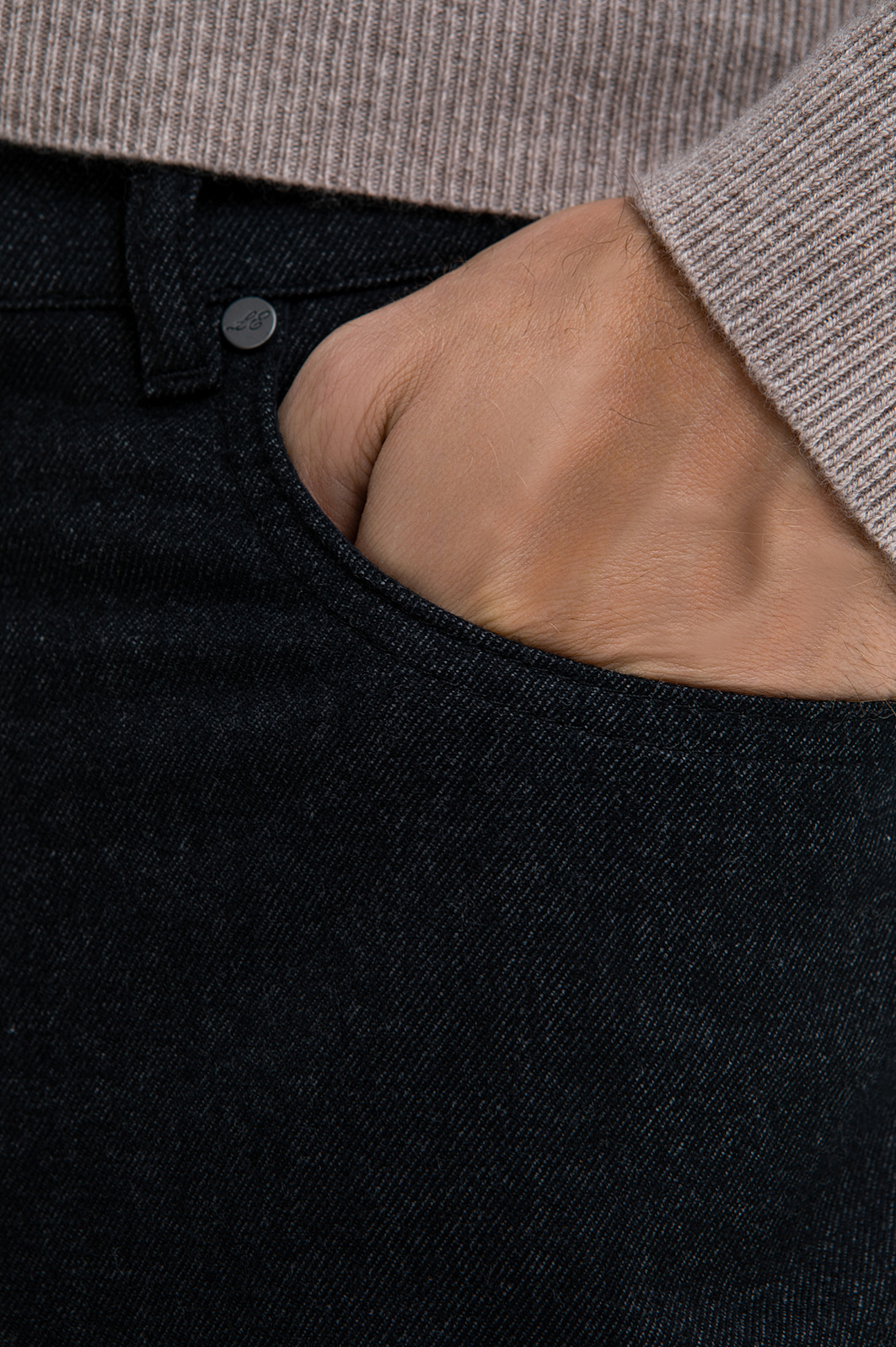 Чёрные брюки KANZLER из лимитированной коллекции с традиционным джинсовым кроем преобразует повседневную эстетику в более элегантный и непринуждённый вариант городской одежды, который легко вписывается в деловой гардероб и современные неформальные образы. Силуэт подходит для любого типа фигуры, обеспечивая комфорт, свободу движений и ощущение уверенности. Саржевое плетение придаёт цвету глубину и насыщенность, а ткани — прочность и долговечность. Натуральный воздухопроницаемый материал — бленд хлопка и шерсти — поддерживает свежесть и сохраняет естественное тепло тела. Параметры модели: рост 188, 97-82-92 Размер на модели: 50