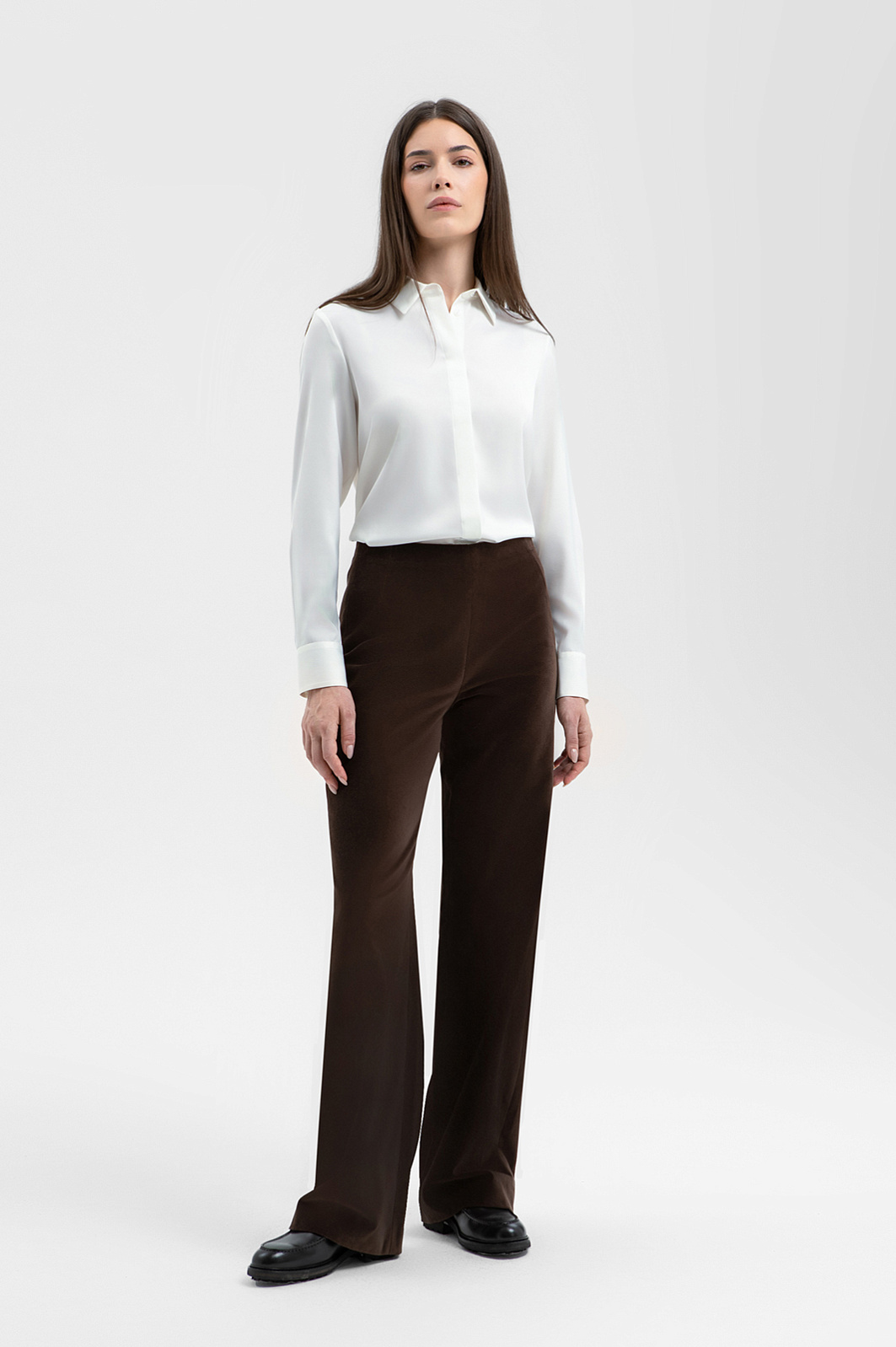 Роскошные брюки KANZLER подчёркивают женственность элегантным силуэтом и мягкой бархатистой структурой ткани из чистого натурального хлопка. Красивый шоколадный оттенок добавляет образу теплоты. Прямой свободный крой не сковывает движений и подходит для любого типа фигуры. Боковые карманы с вшитой невидимой молнией сохраняют чистоту силуэта. Мягкая ткань из 100% гипоаллергенного воздухопроницаемого хлопка дарит бескомпромиссный комфорт: поддерживает естественное тепло и свежесть тела. Её приятная бархатистая структура подчёркивает премиальный характер вещи, которая одинаково эффектно смотрится и в дневных, и в вечерних образах.