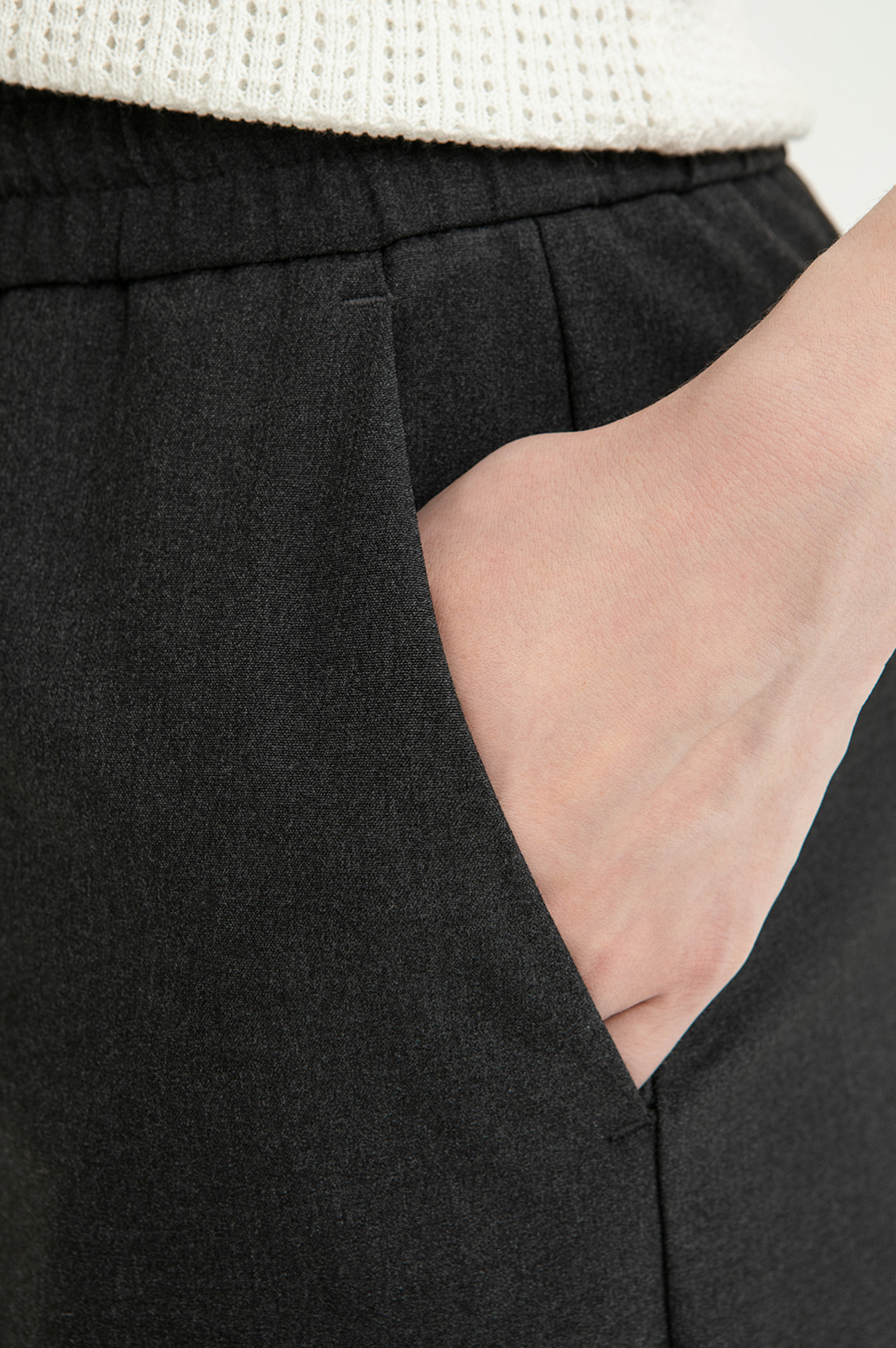 Серые брюки KANZLER на кулиске сочетают элегантность и удобство. Изысканный крой создает женственный силуэт с плавным клёшем от бедра и акцентом на тонкой талии. Небрежная расслабленность модели сочетается со строгими формальными деталями — стрелками и карманами по бокам и сзади. Регулируемый эластичный пояс на шнурке обеспечивает комфортную посадку. Современная технологичная смесовая ткань отличается практичностью и устойчивостью к износу. Прочные волокна полиэстера служат долговечности, нити района обеспечивают воздухопроницаемость, а небольшая добавка эластана помогает ткани поддерживать форму.