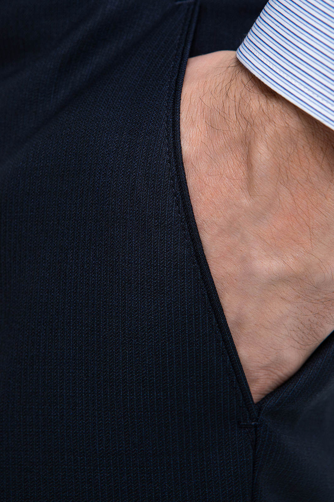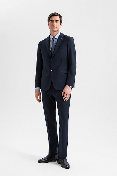 Брюки KANZLER из тонкой мериносовой шерсти Супер 120S глубокого синего цвета — основа безупречного делового образа. Если дополнить их пиджаком KANZLER из той же ткани, получится дорогой элегантный костюм, в котором можно отправиться на переговоры, официальное или светское мероприятие. Для создания повседневных образов брюки можно носить с сорочкой или джемпером. Крой обеспечивает точную посадку. Стрелки вытягивают силуэт и придают уверенность каждому шагу. Дорогая костюмная ткань создана из шерсти мериноса (100%). Ворс мериноса в два раза тоньше других видов шерсти. Это нежный гипоаллергенный материал, который не раздражает даже самую чувствительную кожу. Гладкая прочная подкладка защищает основную ткань от износа и обеспечивает лёгкое скольжение при надевании.