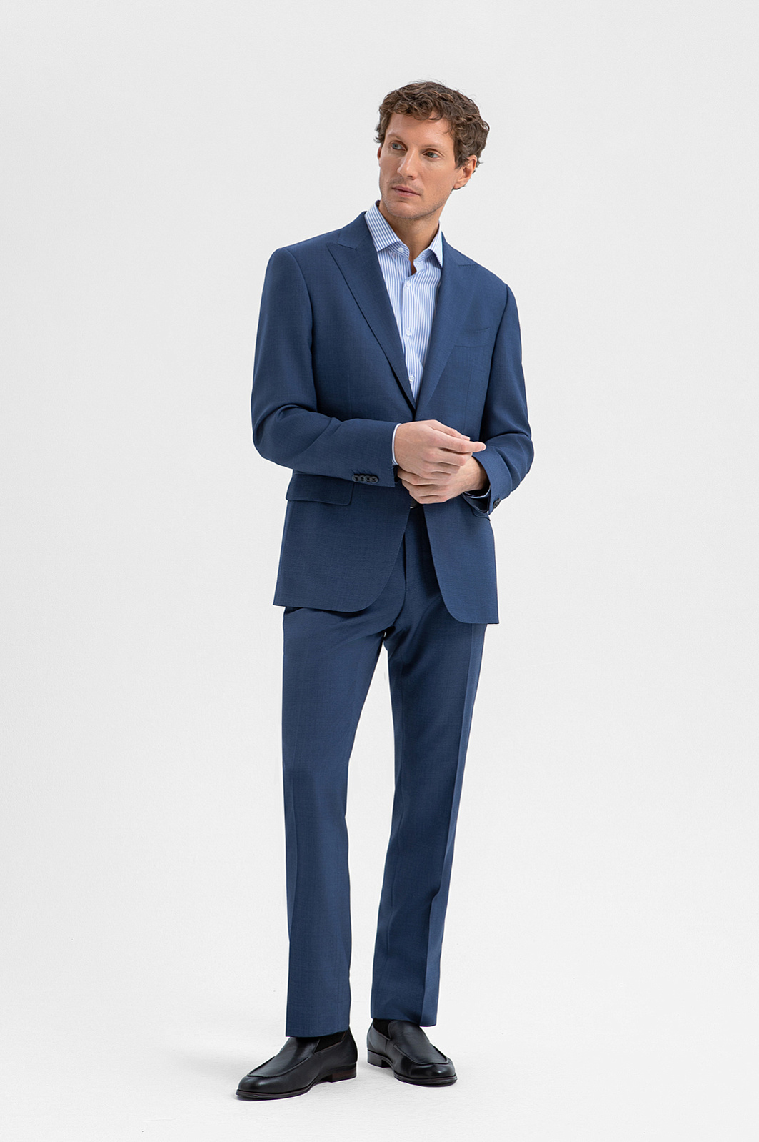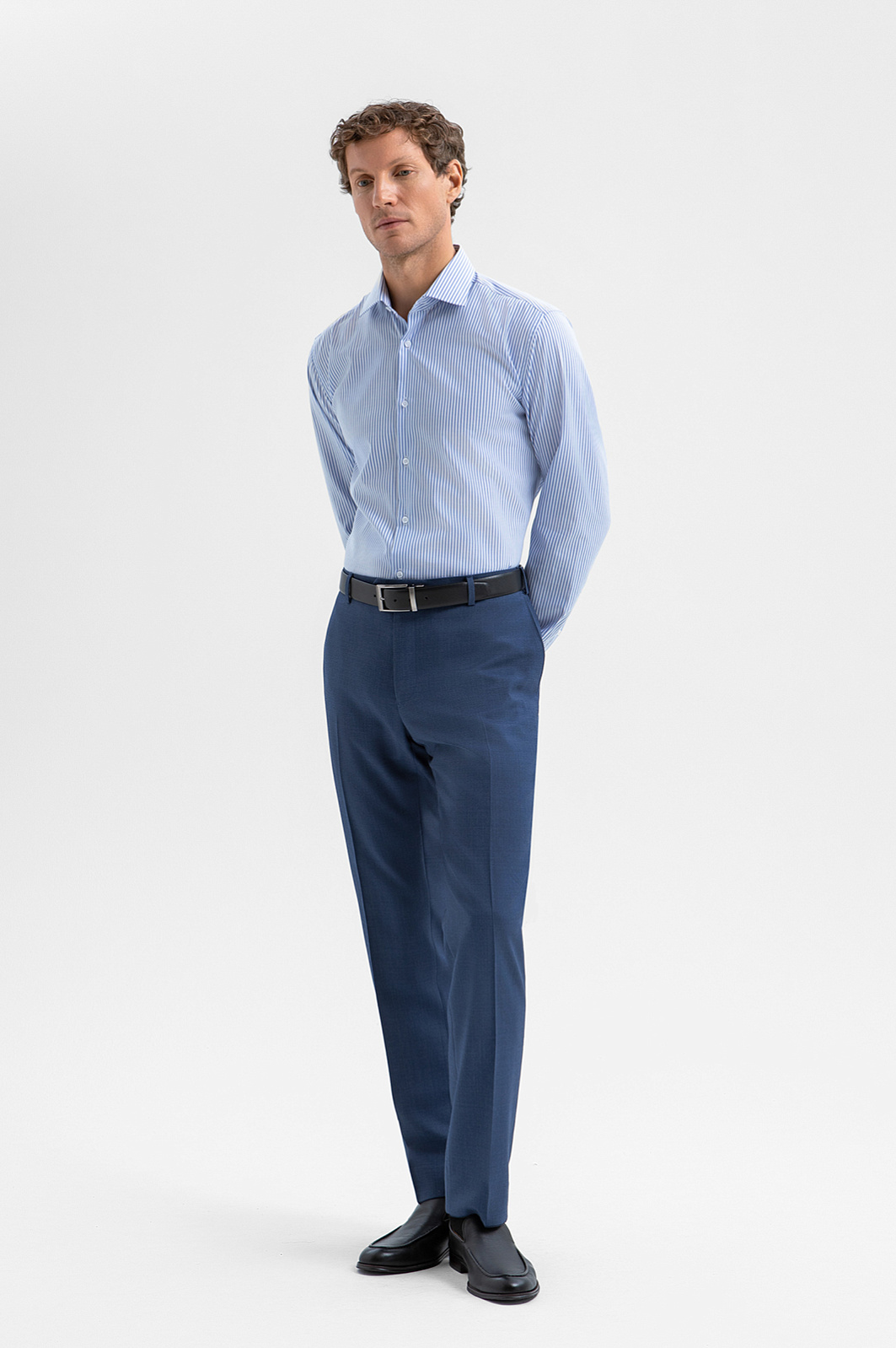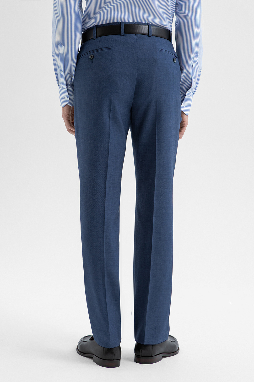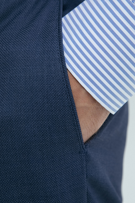 Синие брюки KANZLER из 100% шерсти мериноса — базовый элемент элегантного делового гардероба. Их можно носить с сорочками и джемперами, а для создания цельного костюма, который подходит для официальных мероприятий и светских выходов, дополнить пиджаком KANZLER из такой же ткани. Слегка зауженный крой брюк мягко подчёркивает линию ног, а аккуратные стрелки вытягивают силуэт и придают фигуре стройность. Благородная долговечная ткань сделана из мягкой и нежной шерсти мериноса, которая поддерживает комфортную для тела температуру. Упругие волокна устойчивы к сминанию и прекрасно держат форму.