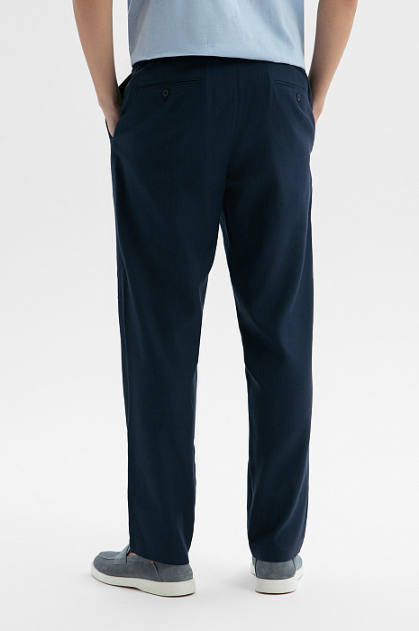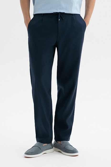 Брюки на кулиске изо льна, тенсела и хлопка, цвет синий темный, цена 14 990 руб. - купить в интернет-магазине KANZLER