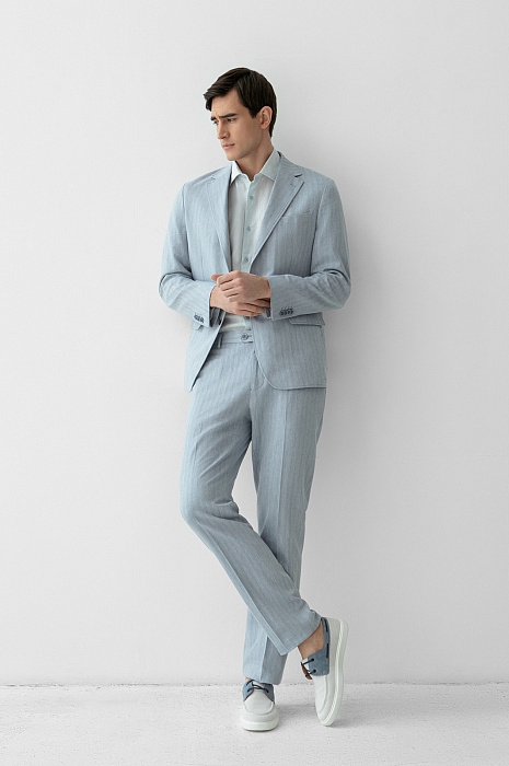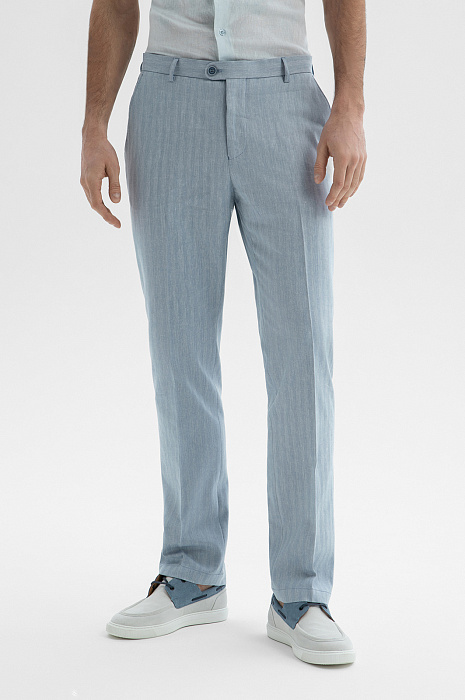 Брюки из хлопка, льна и вискозы, цвет голубой, цена 14 990 руб. - купить в интернет-магазине KANZLER