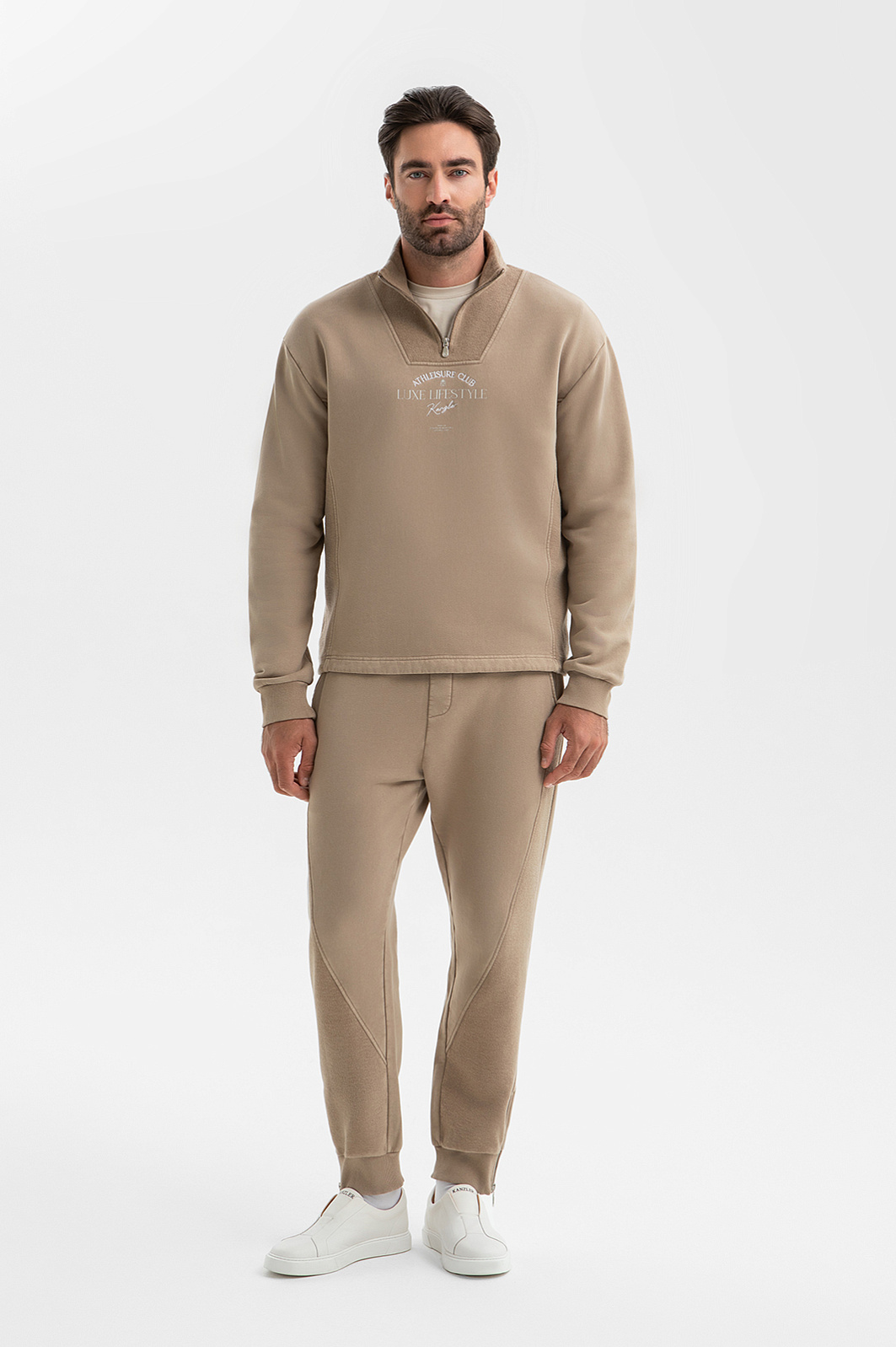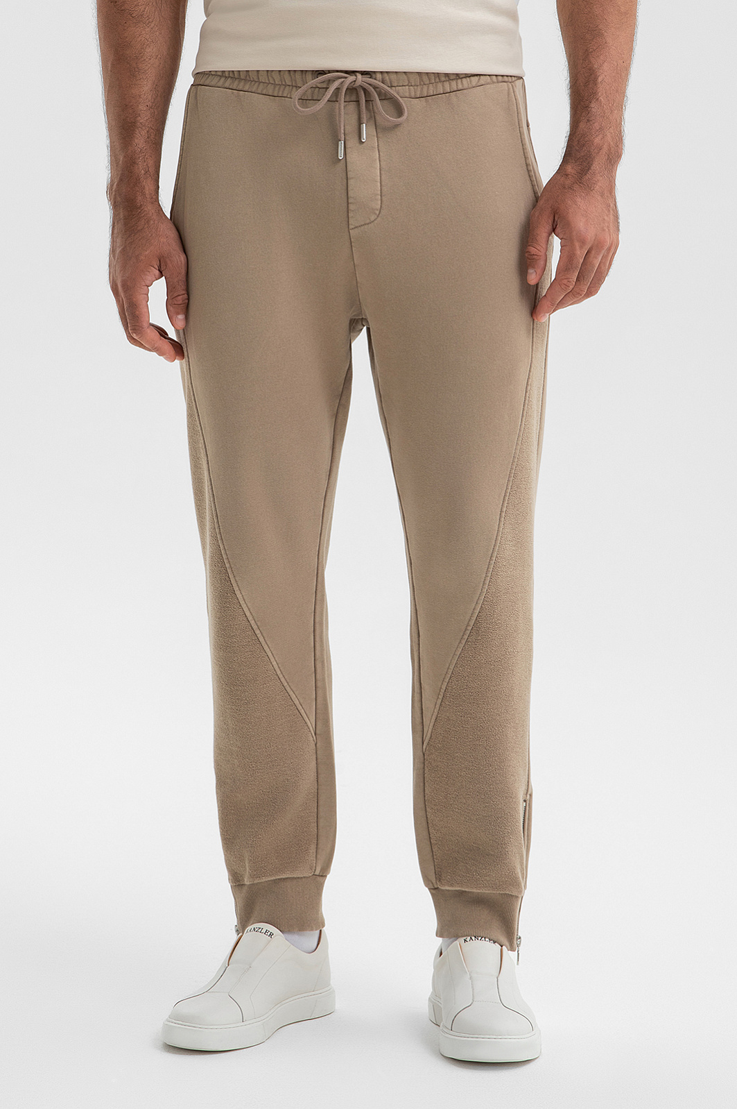 Бежевые джоггеры KANZLER на кулиске созданы для релакса — уютных домашних уик-эндов, выходов на прогулку или шопинг. Модель сочетает два вида трикотажа — гладкую основную часть и вставки из мягкой петельной ткани. Пояс с резинкой, дополненный прочным шнурком с аккуратными металлическими наконечниками, обеспечивает идеальную посадку. По бокам расположены удобные карманы, а низ брюк оформлен мягкими трикотажными резинками и застёжками-молниями. 100% хлопок — натуральный, гипоаллергенный и дышащий материал. Он приятен к телу, хорошо держит форму и обеспечивает комфорт в течение всего дня. Параметры модели: рост 192, 108-83-102 Размер на модели: M
