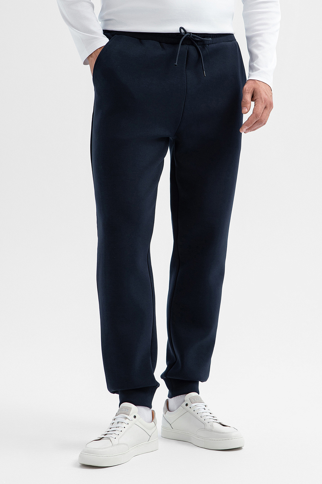 Тёмно-синие джоггеры KANZLER на кулиске отлично смотрятся как в спортивных образах, так и в расслабленных городских сочетаниях с худи или футболкой. Для создания цельного костюма брюки можно дополнить толстовкой в тон. Просторный крой обеспечивает свободу движений, а мягкие трикотажные манжеты по низу делают посадку удобной. Практичные боковые карманы добавляют функциональности, сохраняя лаконичный облик. Кулиска позволяет регулировать объём талии. Cмесовый материал сделан на основе хлопка, который придаёт мягкость и поддерживает циркуляцию воздуха. Полиэстер обеспечивает форму и стойкость к износу, спандекс — эластичность. Подкладка из чистого хлопка поддерживает свежесть тела при активном движении. Параметры модели: рост 189, 102-80-99 Размер на модели: M