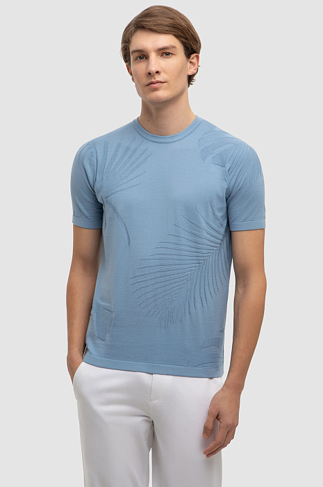 Джемпер с коротким рукавом из хлопка Пима, цвет голубой, цена 4 990 руб., код 267267 - купить в Самаре в интернет-магазине KANZLER