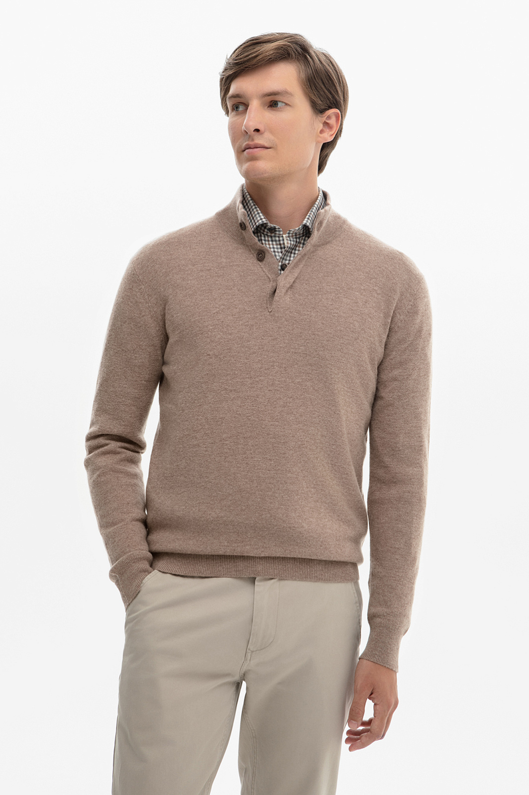 Джемпер из шерсти и кашемира — идеальное сочетание комфорта и стиля, а также основа продуманного гардероба. Особое внимание привлекает меланжевая фактура ткани, которая придаёт изделию объём и утончённость. Эта тонкая игра оттенков в бежевой гамме делает джемпер универсальным, подходящим как для повседневных, так и для более формальных образов. Дизайн изделия отличается продуманными деталями: модель застегивается на брендированные пуговицы с деревянной фактурой, дополнительно скрытые планкой. Застежка добавляет функциональности и аккуратности изделию и позволяет легко регулировать степень комфорта, оставаясь почти незаметной, сохраняя чистоту линий и минималистичный вид. Джемпер KANZLER изготовлен из высококачественной шерсти и кашемира. Этот тандем обеспечивает тепло, мягкость, долговечность и износостойкость. Кашемир придает пряже дополнительную нежность и делает модель более приятной на ощупь. Такой джемпер станет основой вашего гардероба, подчеркивая элегантность и внимание к деталям. Параметры модели: рост 191, 97-77-99 Размер на модели: M