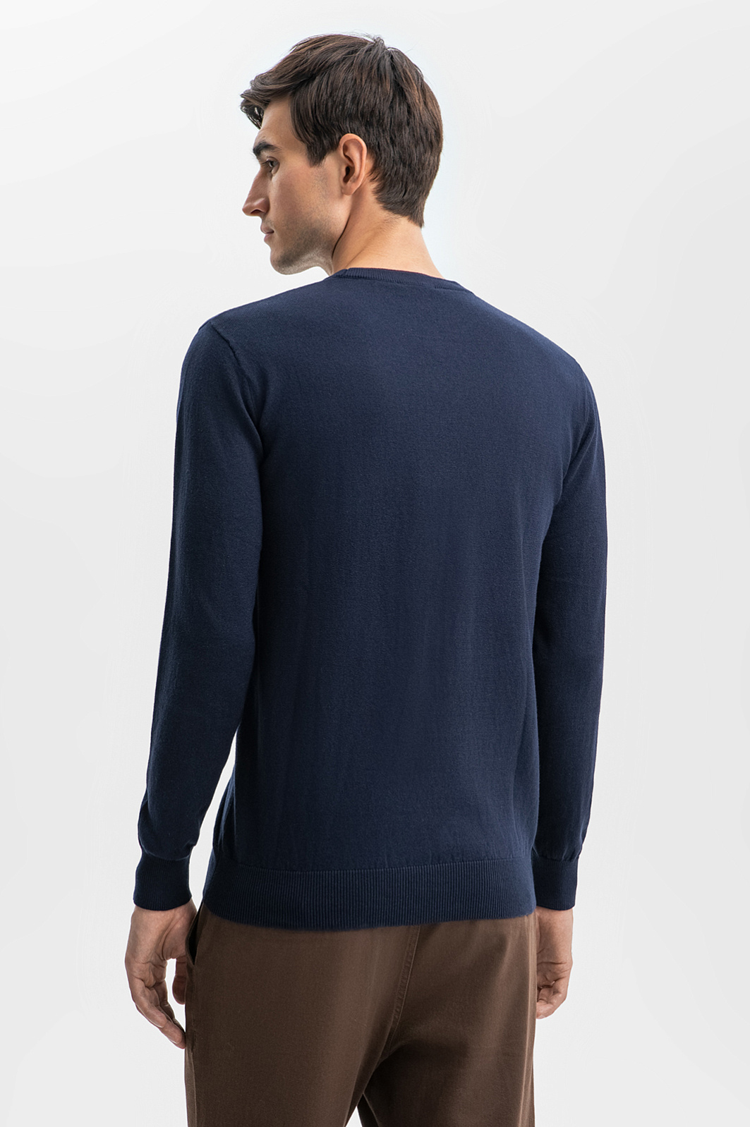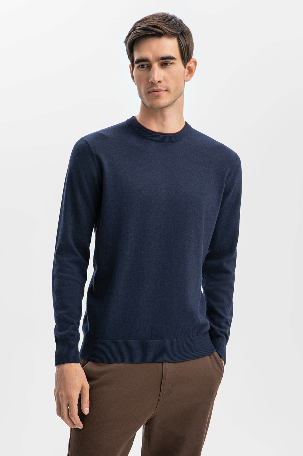 Стильный мужской гардероб требует надежных базовых элементов, и джемпер KANZLER в синем оттенке — это именно то, что нужно. Он идеально подходит для создания как повседневных, так и для более изысканных образов. Модель с круглым воротом защищает от холода, не создавая дискомфорта, что делает ее незаменимой в холодное время года. Однотонный джемпер из натуральной шерсти станет превосходной основой для многослойных комплектов. Его полуприталенный крой подчеркивает фигуру, а великолепный состав — 95% хлопка и 5% кашемира — обеспечивает невероятную мягкость и тепло. Материал также обладает высокой воздухопроницаемостью, и позволяет коже дышать, сохраняя при этом комфортный микроклимат. Благородный синий оттенок — универсальный классический цвет, который легко комбинируется с другими цветами и текстурами. Наши стилисты советуют сочетать изделие с пиджаком и классическими брюками для делового образа, с джинсами и кедами - для повседневного стиля. Параметры модели: рост 192, 101-76-97 Размер на модели: M