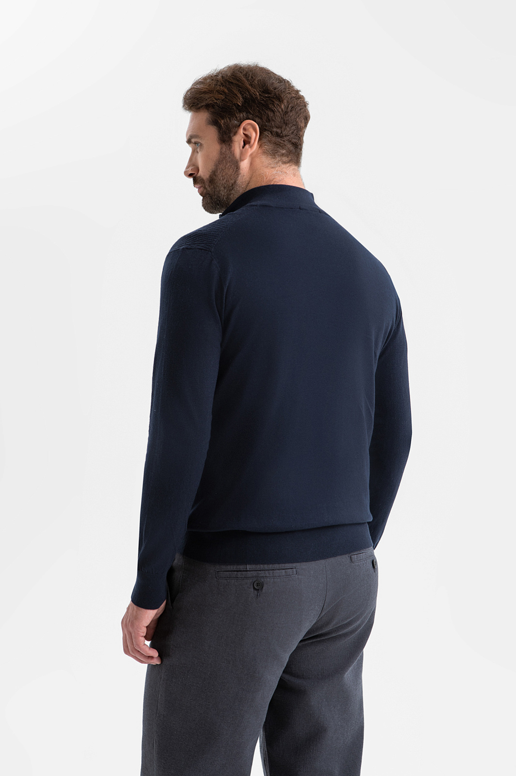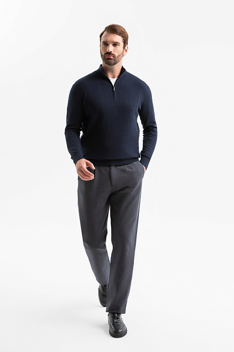 Джемпер KANZLER из хлопка и кашемира с молнией — воплощение комфорта и элегантности. Базовая модель для мужчины, который ценит качество, стиль и премиальные материалы. Переднюю часть украшает выразительный фактурный рисунок, образованный диагональным рубчиком и чёткими вертикальными линиями. Архитектурный дизайн подчеркивает строгость и аккуратность модели, делая её уместной как в деловом, так и в повседневном стиле. Вязаный трикотаж из натуральных волокон приятен к телу, мягко ложится по фигуре и обеспечивает комфорт в течение дня. Кашемир придаёт ткани изысканный вид и нежность, а гипоаллергенный хлопок — прочность, воздухопроницаемость и практичность. Параметры модели: рост 189, 102-80-99 Размер на модели: M