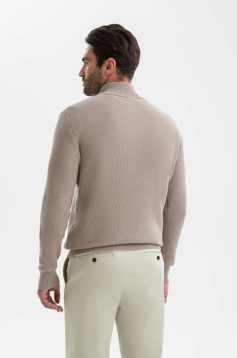 Светло-коричневый джемпер KANZLER – вечная классика в безупречном исполнении. Для его создания выбрали 100-процентный хлопок премиального качества, мягкий гипоаллергенный материал, который сохраняет форму и цвет после многократных стирок. Мягкий воротник-стойка на молнии – акцентная деталь, позволяющая трансформировать образ и регулировать комфортную температуру. Резинка на манжетах и вдоль низа обеспечивает идеальную посадку и сохраняет тепло. Параметры модели: рост 192, 108-83-102 Размер на модели: M