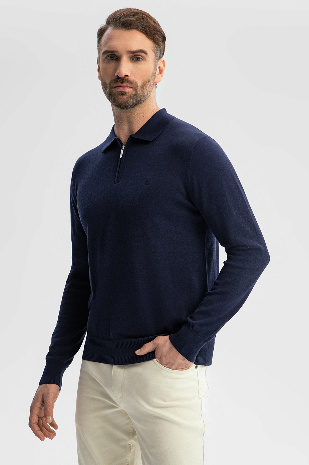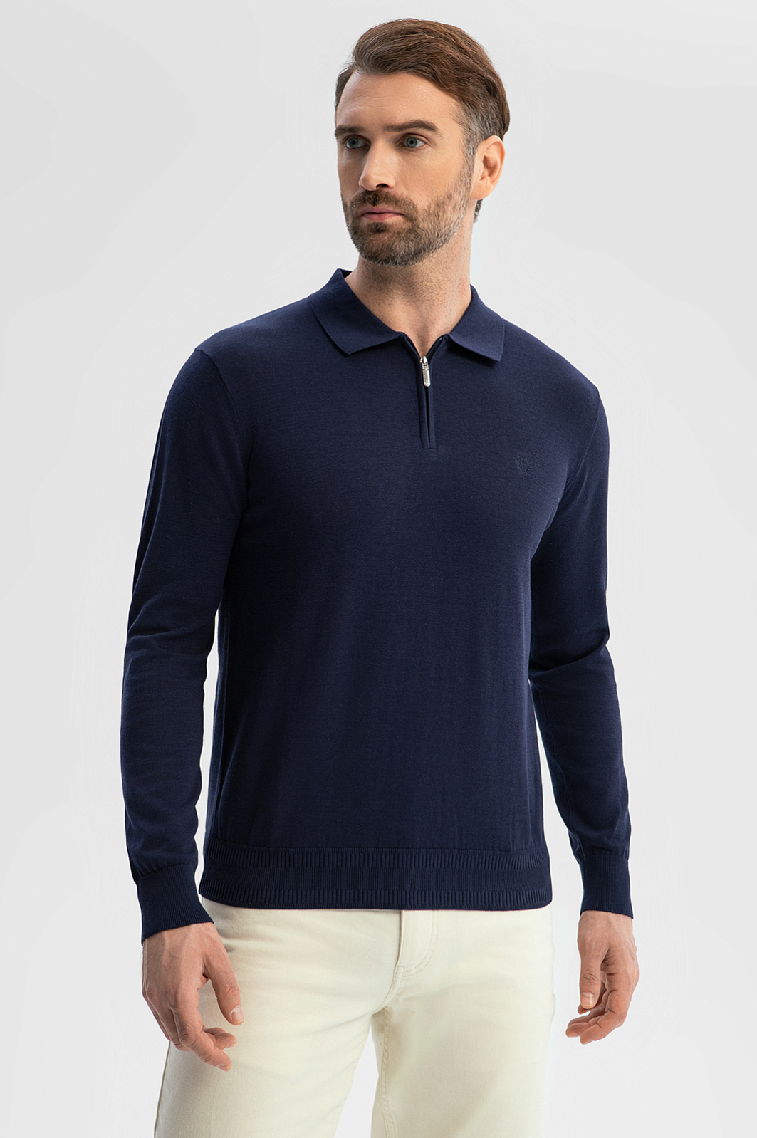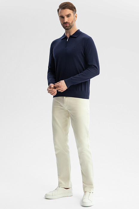 Поло KANZLER в глубоком темно-синем оттенке добавит образу выразительности и статусности. Модель выполнена из уникального премиального материала, сочетающего три вида волокон: натуральный хлопок (85%) отвечает за мягкость и воздухопроницаемость, добавление шелка (10%) дарит легкий благородный блеск и гладкость, а лен (5%) придает изделию прочность. Легкое и приятное на ощупь поло - идеальный выбор для тех, кто ценит универсальность: модель одинаково хорошо смотрится с классическими брюками и джинсами, в офисной среде или на отдыхе. Параметры модели: рост 189, 102-80-99 Размер на модели: M