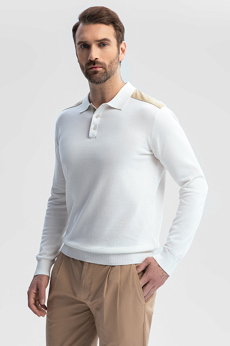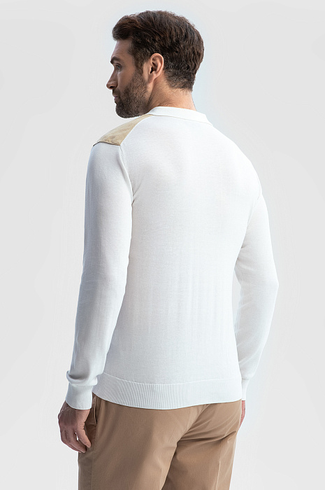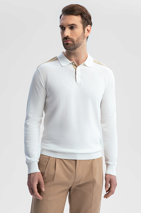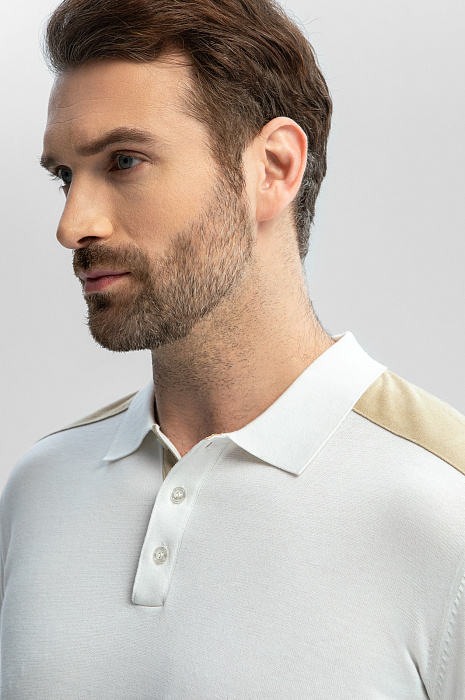 Поло из хлопка, шелка и льна с отделкой из алькантары, цвет белый, цена 8 990 руб., код 269187 - купить в Самаре в интернет-магазине KANZLER