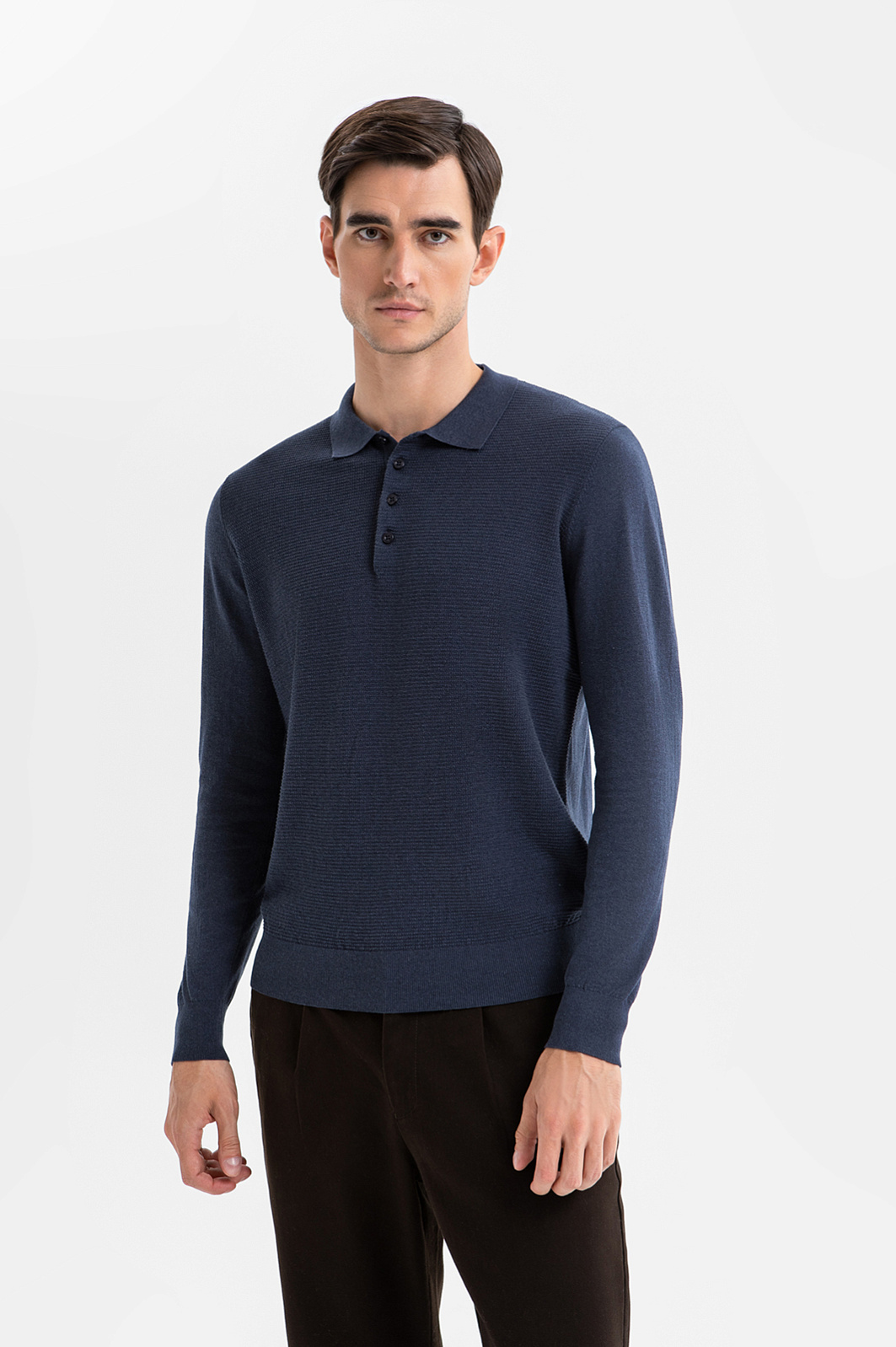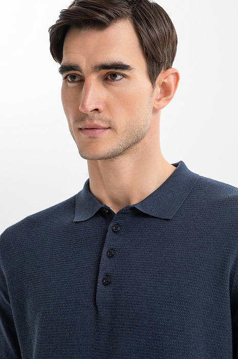 Джемпер поло из хлопка Пима, цвет синий, цена 6 990 руб., код 270233 - купить в Самаре в интернет-магазине KANZLER