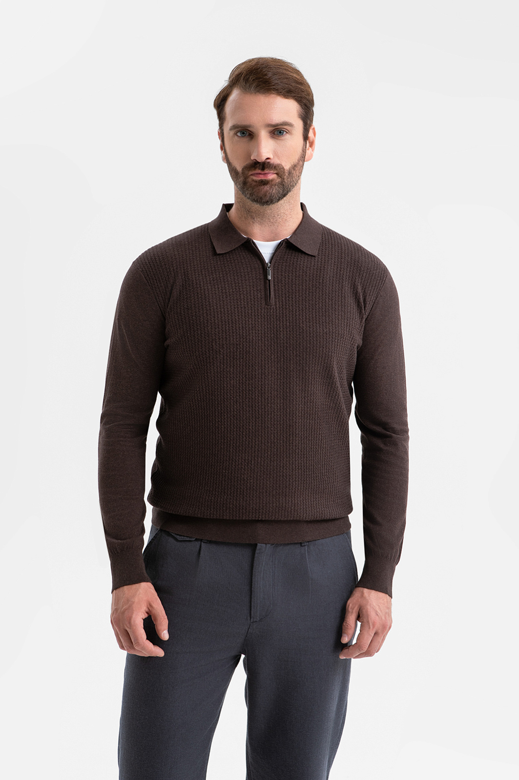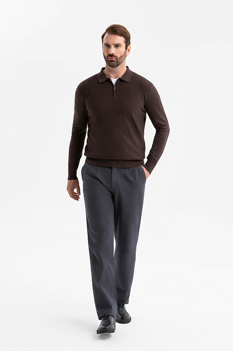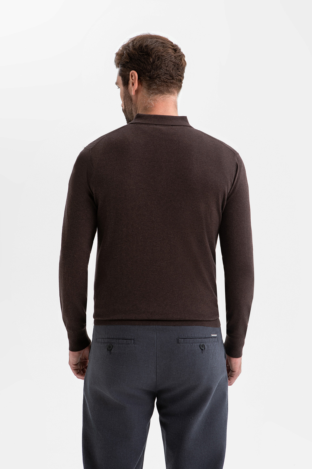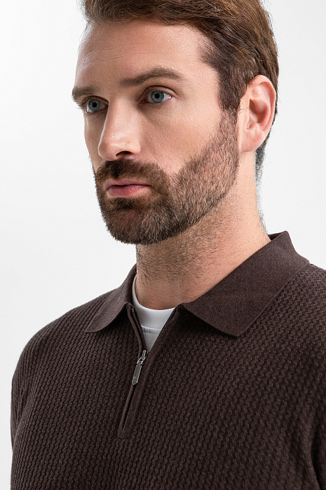 Джемпер поло из хлопка Пима, цвет коричневый, цена 8 990 руб., код 270235 - купить в Самаре в интернет-магазине KANZLER