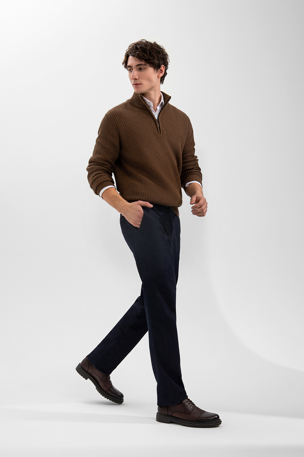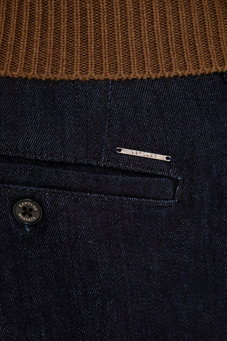 Джинсы KANZLER объединяют эстетику классического синего денима и элегантный брючный крой, создавая универсальную основу для повседневных городских образов. Прямой силуэт обеспечивает удобную посадку и визуально вытягивает пропорции тела. Небольшой металлический шильдик и пуговицы с логотипом на задних карманах служат деликатным декоративным акцентом. Мягкий приятный к телу деним из гипоаллергенного дышащего хлопка (98%) с добавлением эластана (2%) обеспечивает комфорт и ощущение свежести в течение дня. Внутренняя подкладка из прочной смесовой ткани повышает износостойкость и облегчает надевание брюк.