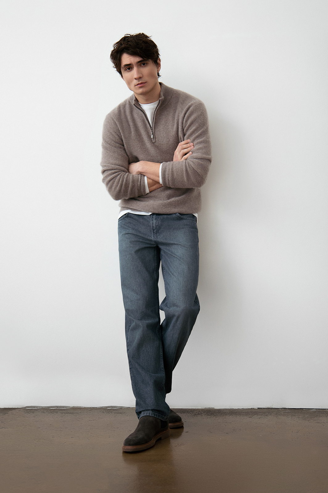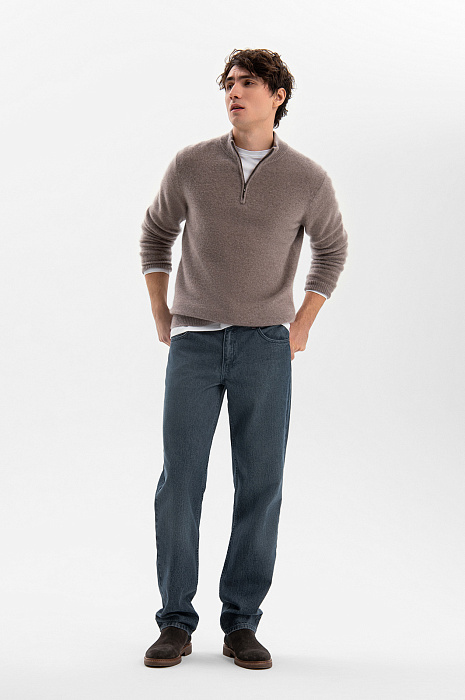 Джинсы KANZLER традиционного кроя с пятью карманами в спокойном серо-голубом оттенке — вневременная классика повседневного гардероба. Прямой силуэт формирует удобную посадку, делая модель универсальной для любого типа комплекции. Тиснёный инициал на «кармане для мелочи» и полукруглая фирменная нашивка на заднем кармане служат декоративными акцентами и отмечают принадлежность к бренду, не нарушая сдержанной эстетики. Деним из гипоаллергенного хлопка (99%) с добавлением эластана (1%) — не только приятный к телу, мягкий и дышащий, но и достаточно пластичный материал.