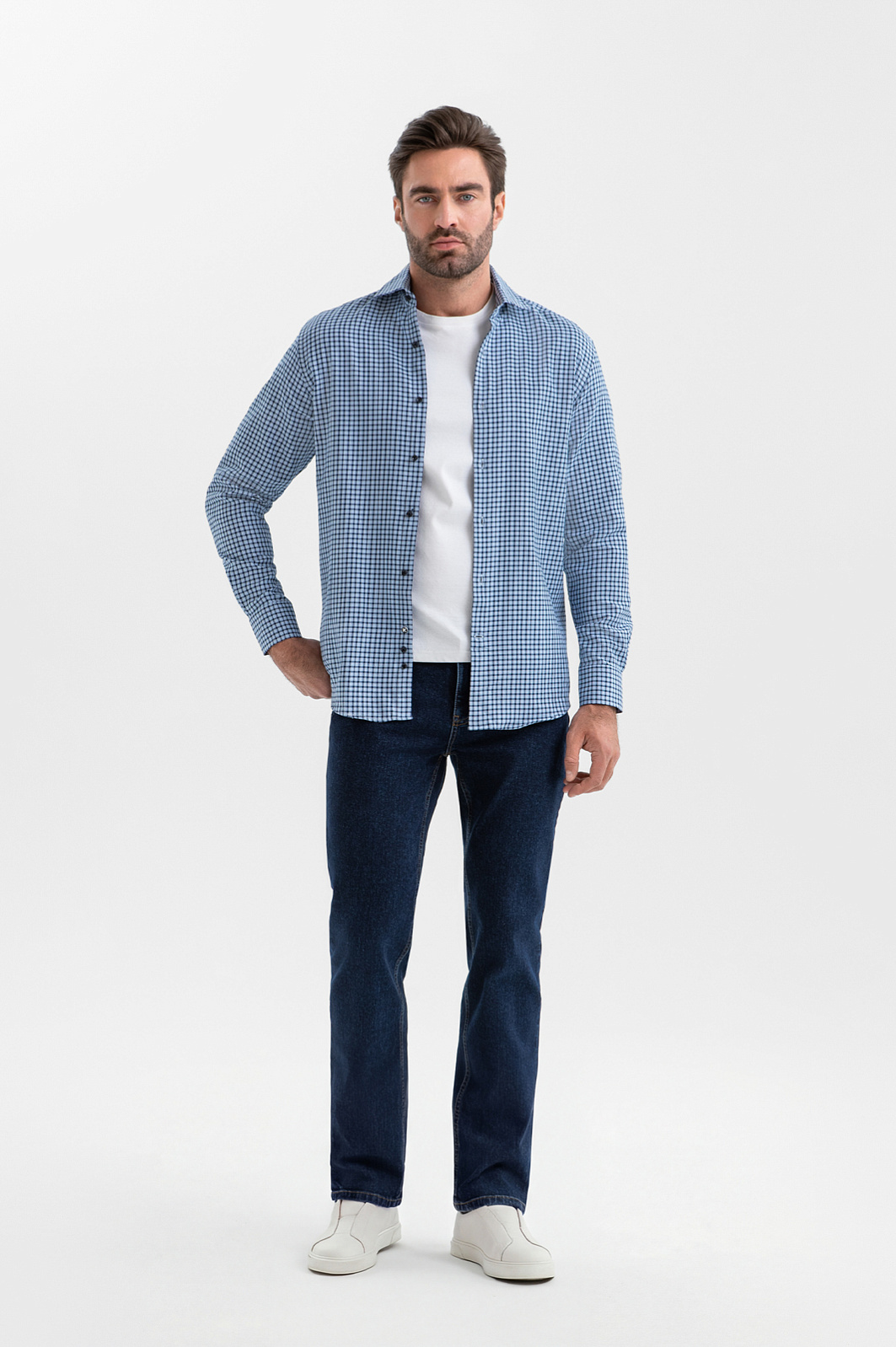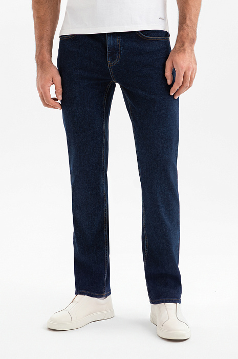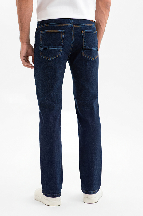 Классические синие джинсы KANZLER —универсальная основа для бесчисленных повседневных аутфитов. Модель подходит для любого типа комплекции. Прямой крой выстраивает чистый силуэт и выверенные пропорции. Швы подчёркнуты традиционной коричневой строчкой. Мягкий качественный деним создан на основе хлопка. Натуральные гипоаллергенные волокна обеспечивают телу комфорт и свежесть. Добавление полиэстера и эластана делает ткань более прочной, износоустойчивой и пластичной.