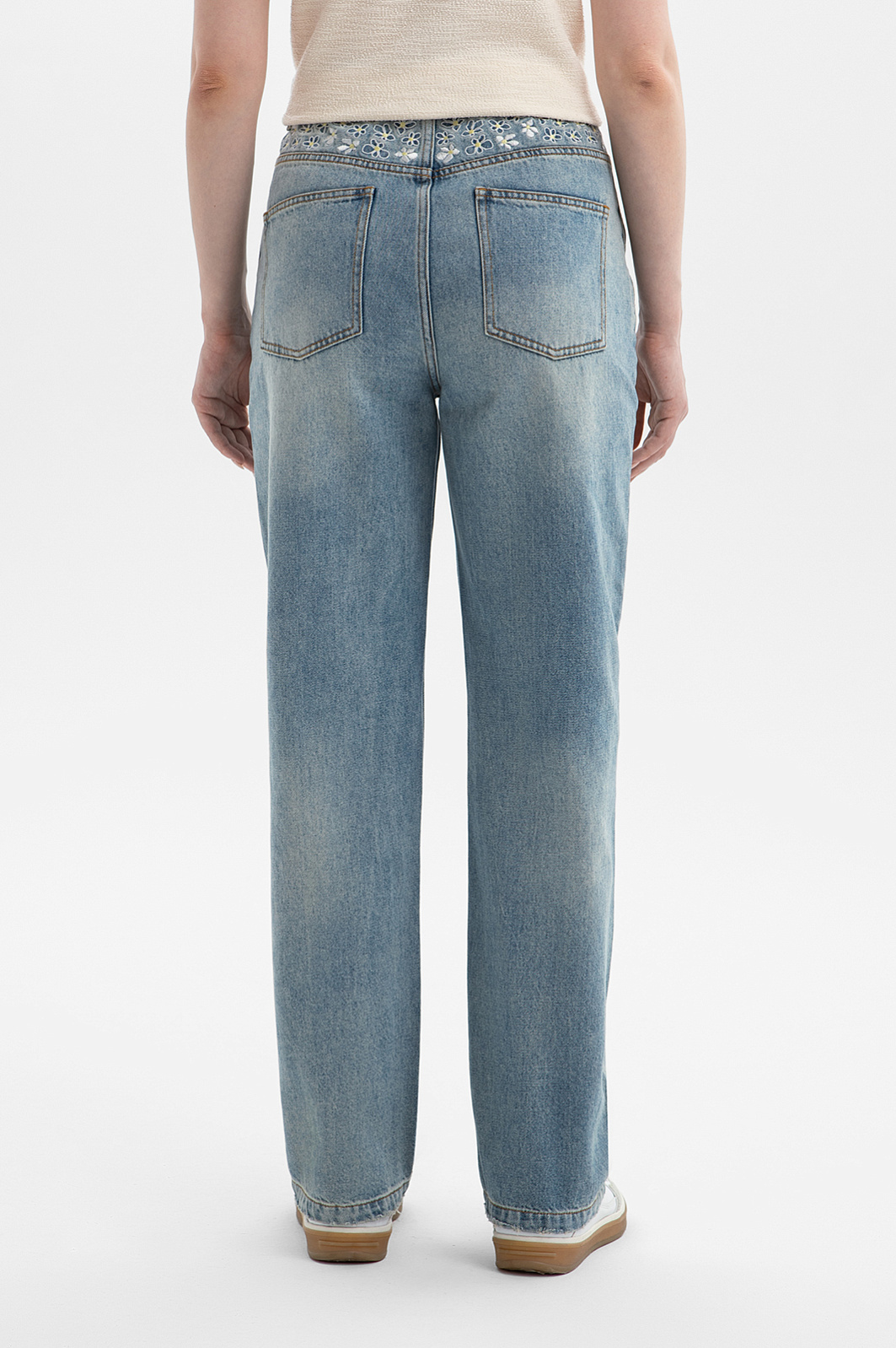 Благодаря эффекту потёртости джинсы KANZLER выглядят как ценная винтажная пара. При этом они универсальны и могут сочетаться с любой повседневной одеждой — от футболок и свободных рубашек до толстовок и бомберов. Изящная вышивка в виде ромашек на кокетке сзади оживляет голубой деним и придаёт модели лёгкое романтичное настроение. Удобная высокая посадкой и универсальный крой подойдут для любого типа фигуры, а мягкий высококачественный деним из хлопка (100%) поддерживает ощущение свежести даже в жаркие дни. Секрет — в натуральных гипоаллергенных волокнах, которые отлично пропускают воздух и отводят влагу.