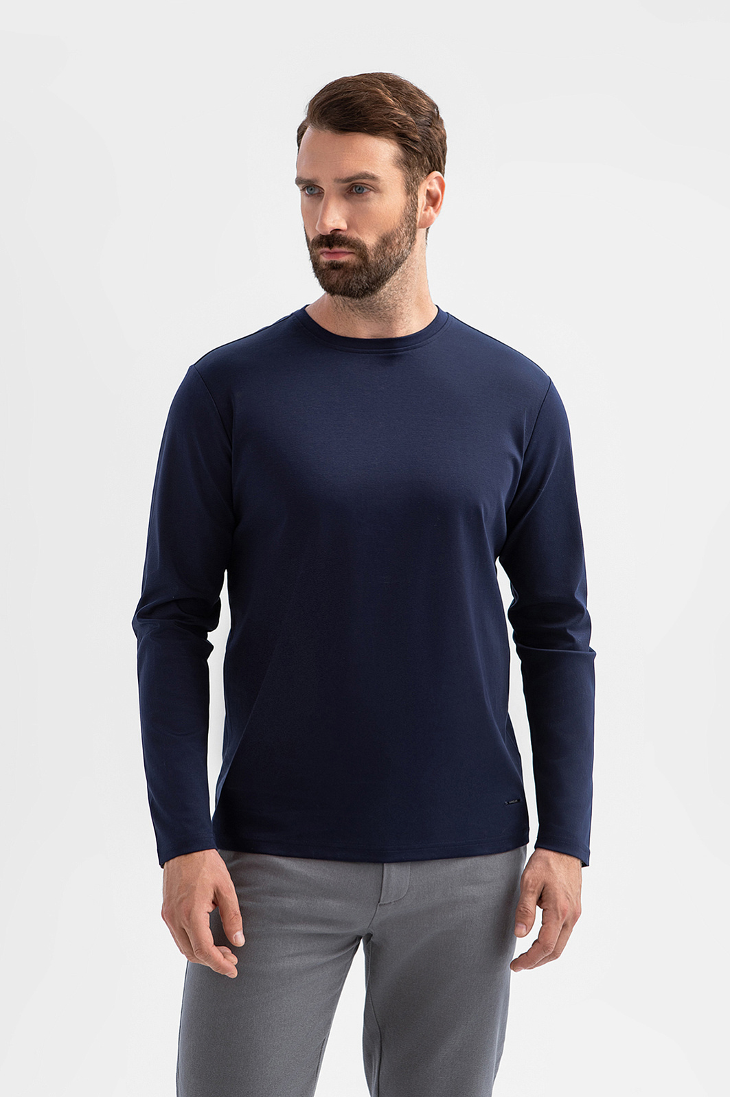Темно-синий лонгслив KANZLER – универсальная база гардероба в превосходном исполнении. Модель выполнили из 100-процентного хлопка премиального качества. Материал обеспечивает идеальный воздухообмен и отводит влагу. Мерсеризованный хлопок плотного плетения с приятной фактурой сохраняет форму и цвет после многократных стирок. Темно-синий оттенок – выбор для множества образов, от кежуал до спортивных. Носите лонгслив как самостоятельный элемент или создавайте многослойные образы с кардиганом или рубашкой. Параметры модели: рост 189, 102-80-99 Размер на модели: M