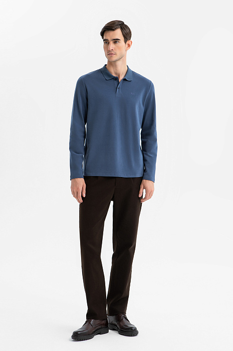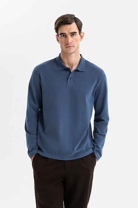 Лонгслив поло из хлопка, цвет голубой, цена 4 990 руб., код 270020 - купить в Самаре в интернет-магазине KANZLER