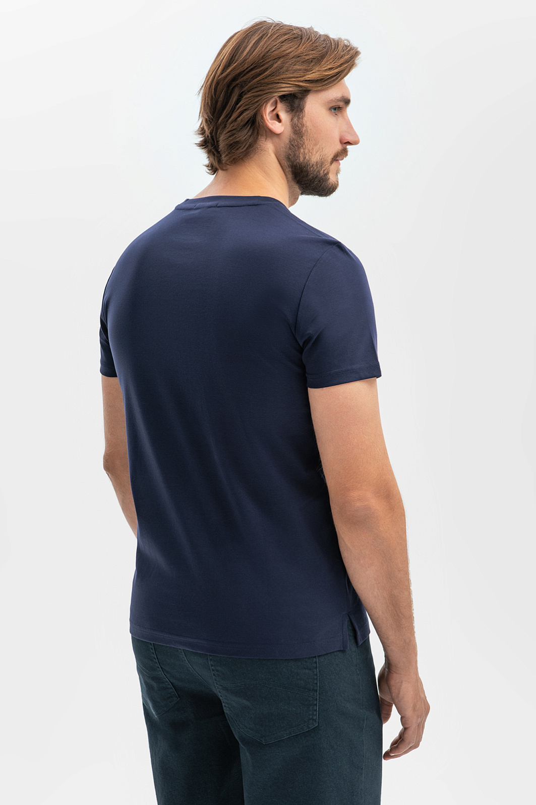 Полуприлегающая футболка в благородном синем оттенке  – комфортная базовая модель для функционального гардероба. 100% мерсеризованный хлопок отличается особой прочностью и способностью сохранять первоначальный вид даже после множества стирок. Мягкий дышащий материал обладает особой гладкостью и напоминает шелк, что выводит базовую модель на новый уровень и добавляет нотку шика. Безупречная посадка и Приталенный силуэт подчеркнут достоинства фигуры. Модель декорирована аккуратным металлическим шильдиком с логотипом бренда. Параметры модели: рост 187, 100-81-97 Размер на модели: M