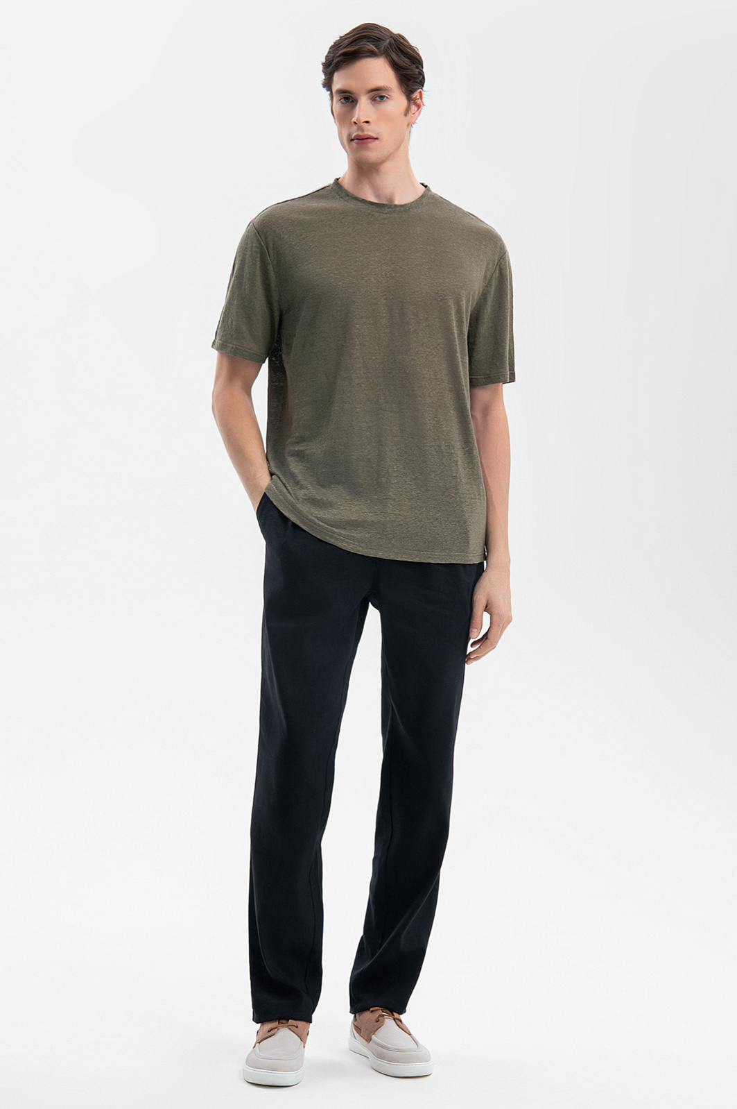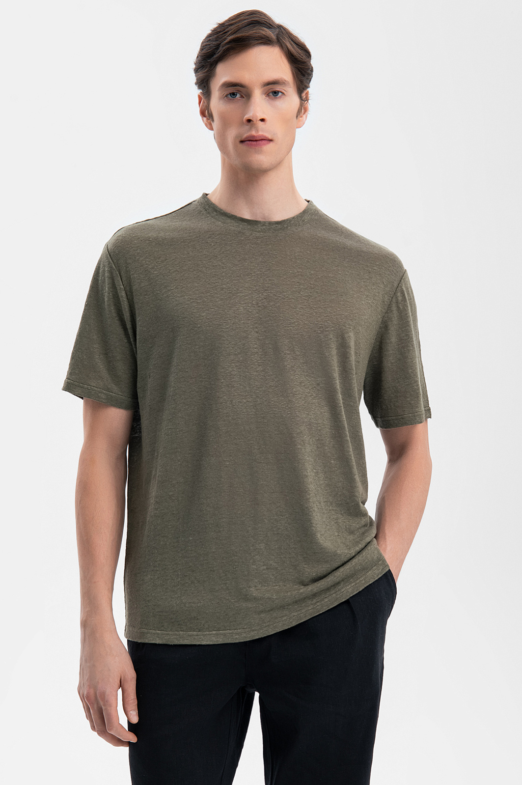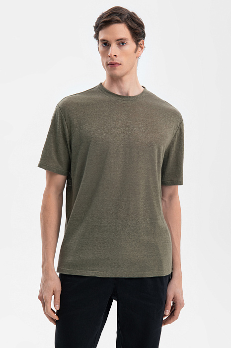 Футболка изо льна, цвет хаки, цена 5 990 руб., код 269252 - купить в Самаре в интернет-магазине KANZLER