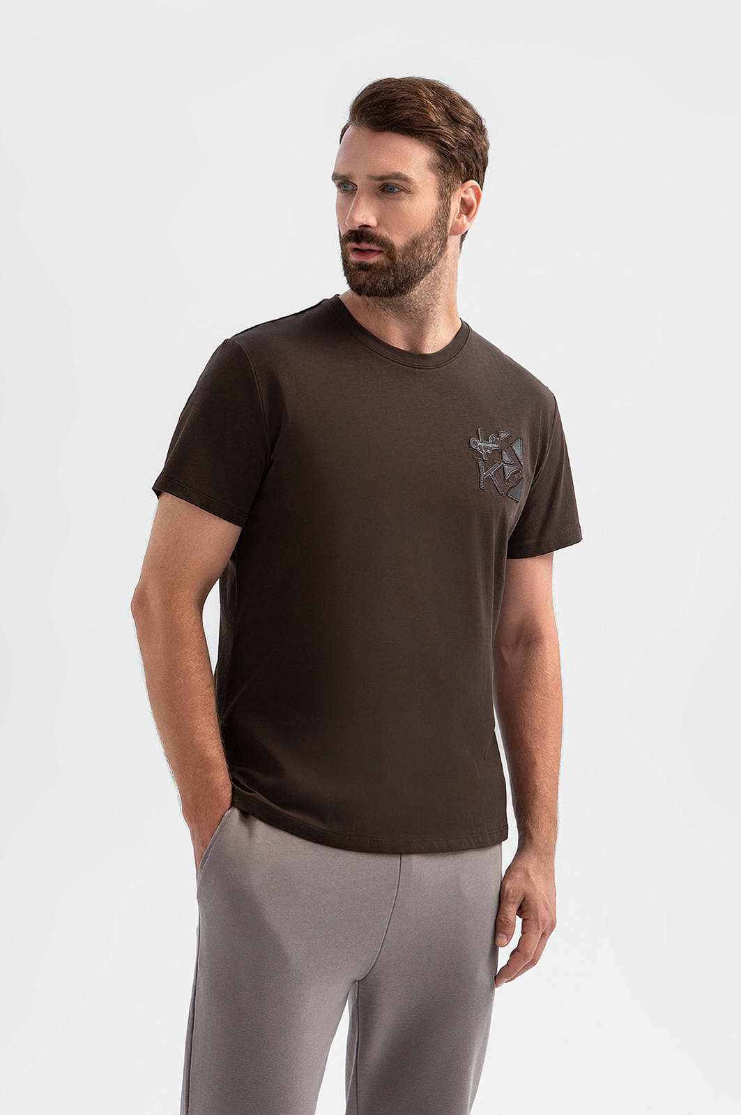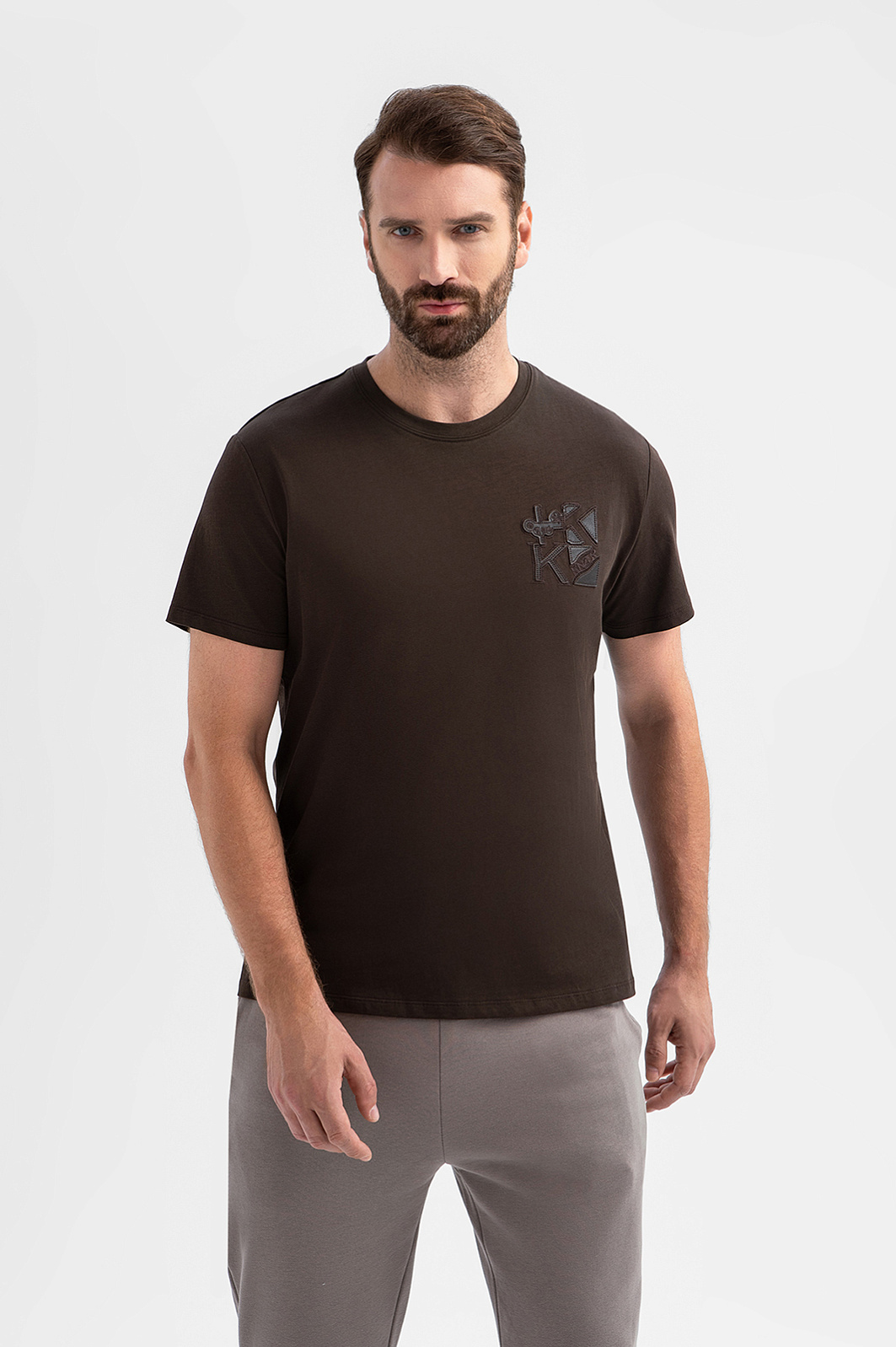 Футболка KANZLER шоколадного оттенка из чистого хлопка — стильная элегантная модель со спортивным характером, которая отлично сочетается с джинсами и джоггерами. Прилегающий силуэт подчёркивает линии тела, создавая современный динамичный образ. Оригинальная фирменная нашивка на груди служит акцентом, который превращает базовую футболку в стильную узнаваемую вещь. Эластичный трикотаж из чистого гипоаллергенного хлопка обеспечивает естественную мягкость, воздухопроницаемость и комфорт в течение дня. Параметры модели: рост 189, 102-80-99 Размер на модели: M