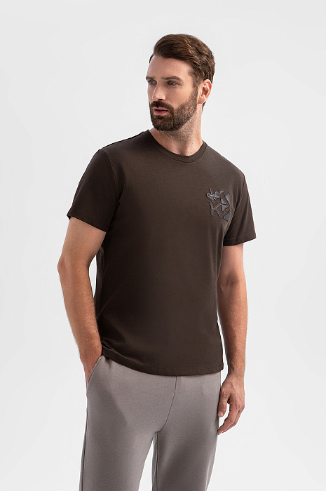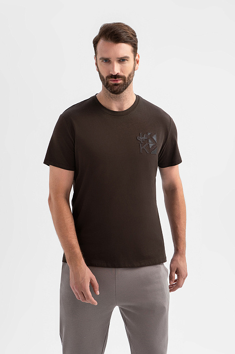 Футболка из хлопка, цвет коричневый, цена 3 990 руб., код 270211 - купить в Самаре в интернет-магазине KANZLER