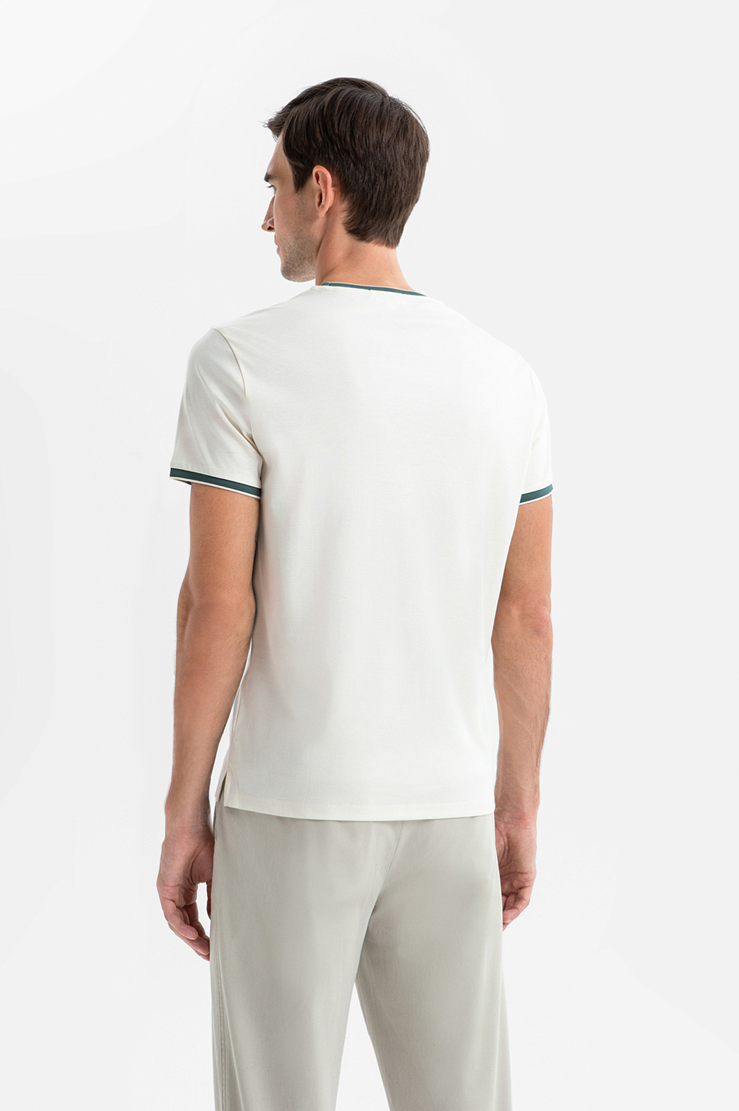 Футболка KANZLER из мерсеризованного хлопка молочного оттенка — это воплощение спорт-шика. Прилегающий силуэт мягко повторяет линии тела, а контрастные полоски на рукавах и полукруглой горловине придают модели графичную выразительность. Трикотаж футболки изготовлен из мерсеризованного хлопка (100%), который наделяет ткань шелковистой гладкостью. Тактильно приятный гипоаллергенный материал подойдёт для самой чувствительной кожи. Он отличается благородным лоском, природной мягкостью, лёгкой и дышащей структурой. Параметры модели: рост 192, 101-76-97 Размер на модели: M