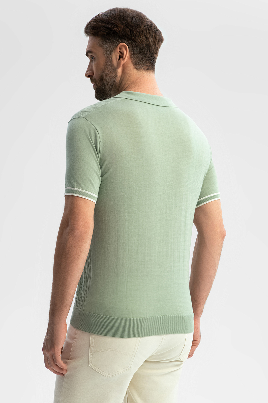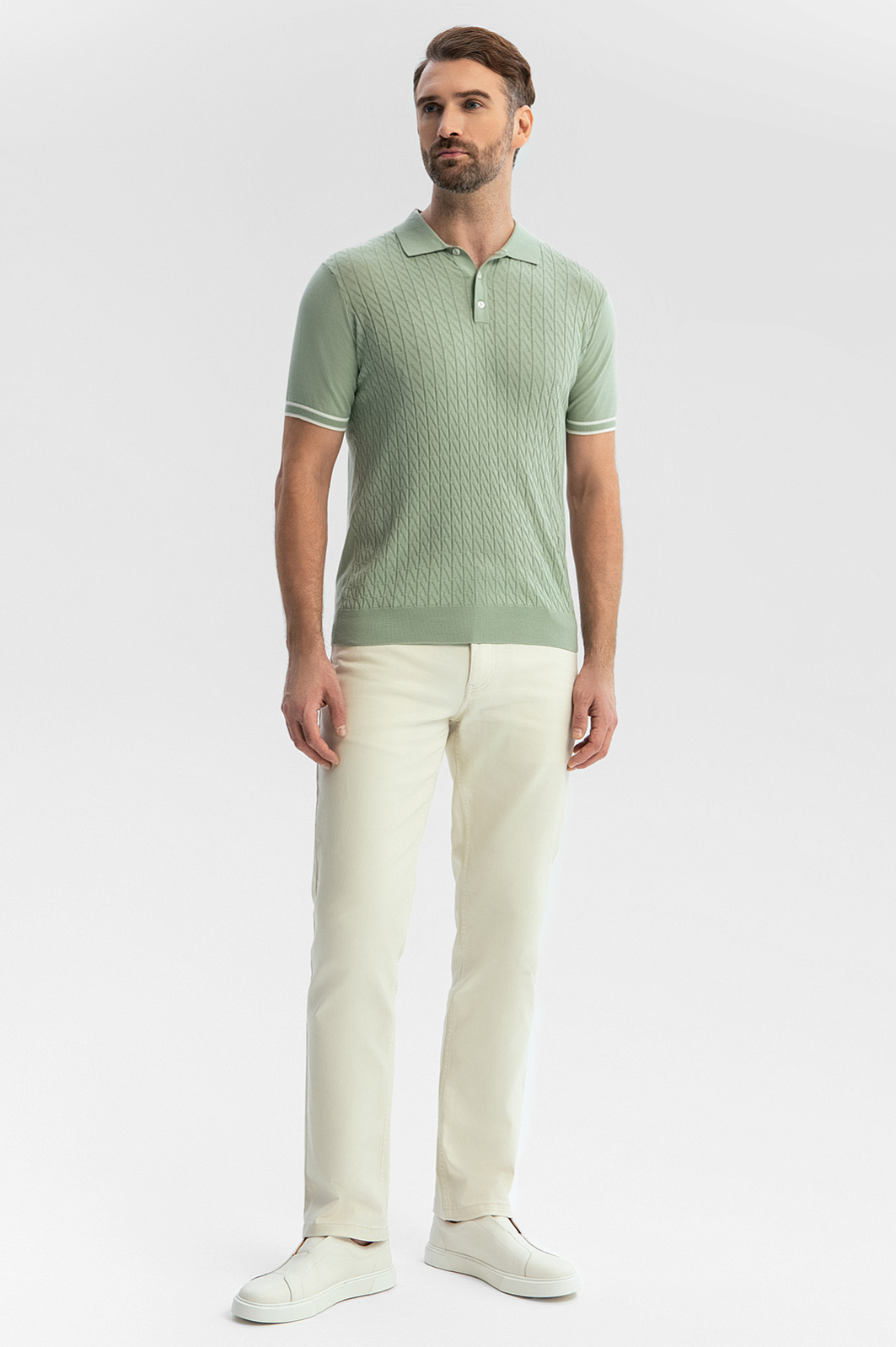 Поло KANZLER в благородном оливковом оттенке — симбиоз утонченного стиля и комфорта. Для создания модели выбрали премиальный хлопок Пима — уникальный материал, обладающий повышенной прочностью, легкостью и шелковистой фактурой. Мягкие гипоаллергенные волокна сохраняют цвет и форму на протяжении долгого времени — благодаря долговечности поло станет инвестицией в гардероб. Изысканный фактурный узор придает модели глубину и индивидуальность. Вертикально направленные полосы формируют стройный силуэт и визуально вытягивают фигуру. Дополните модель светлыми брюками для создания запоминающегося образа. Параметры модели: рост 189, 102-80-99 Размер на модели: M