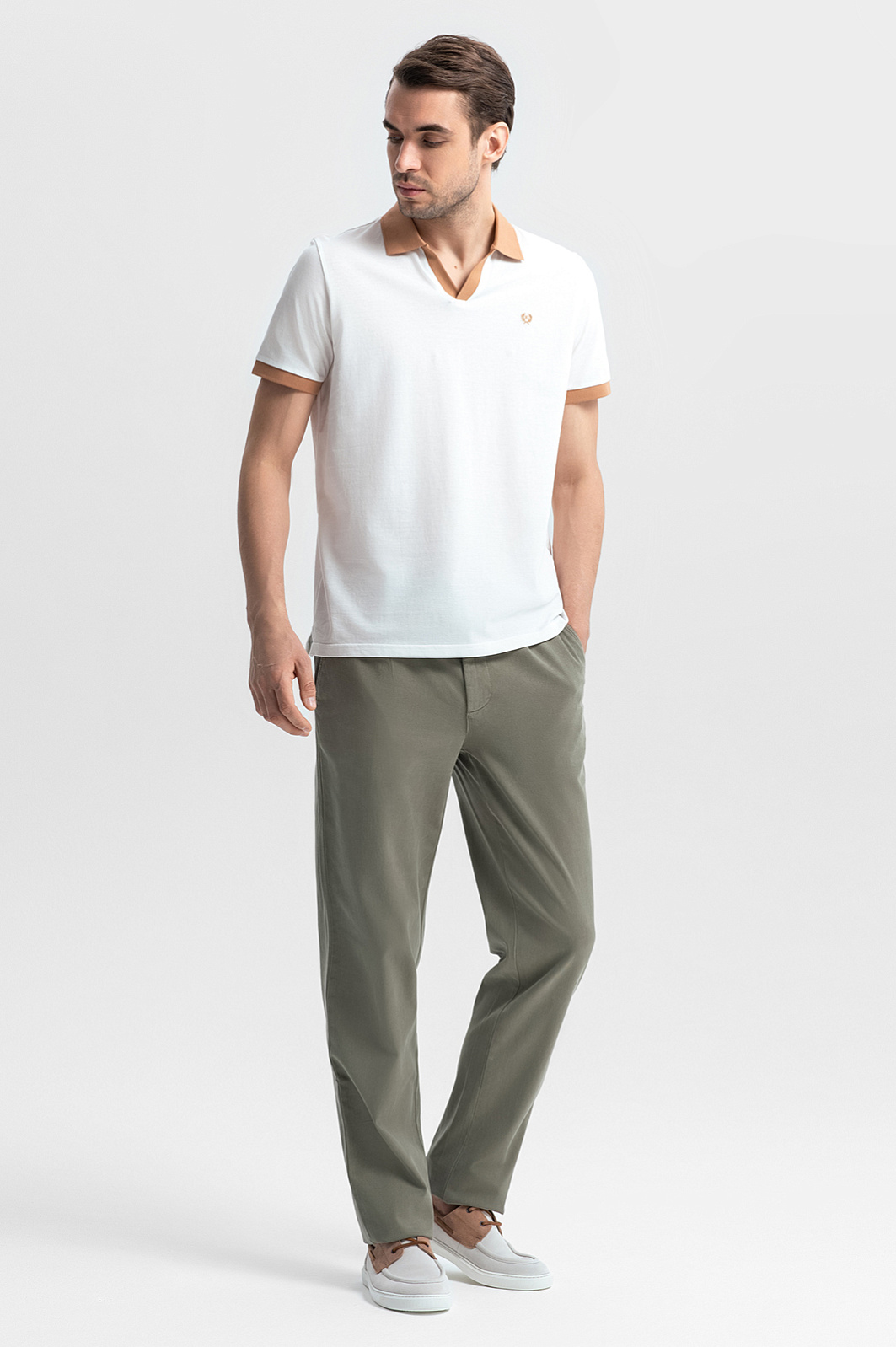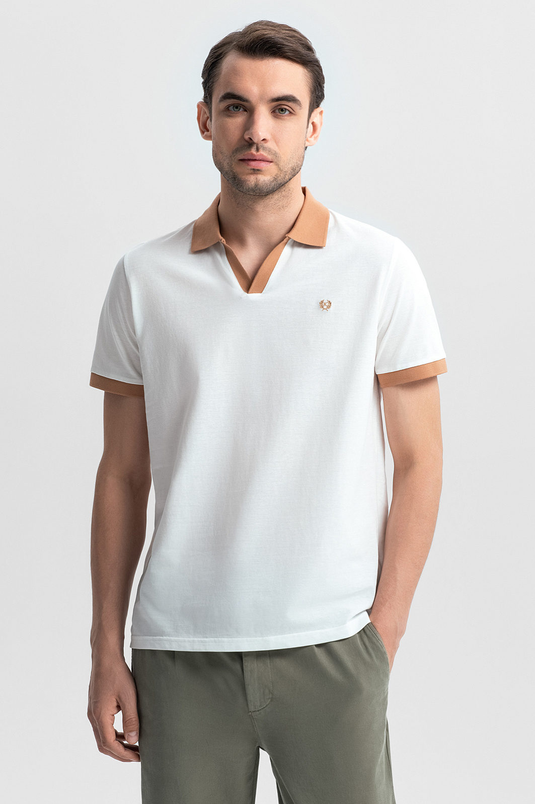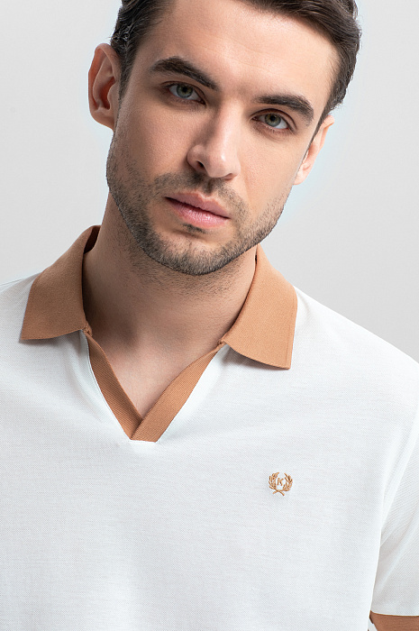 Молочное поло KANZLER – воплощение утонченного стиля с ноткой ретро-шика. Легкий и мягкий материал из 100-процентного хлопка обеспечивает комфорт в течение всего дня. Натуральные волокна прошли процесс мерсеризации, придающий ткани прочность, устойчивость к деформации и нежную шелковистую фактуру. Приталенный крой формирует аккуратный силуэт, не стесняя движений. Контрастные бежевые манжеты и отложной воротник придают образу индивидуальности. Небольшой вышитый логотип на груди обозначает принадлежность бренду. Сочетайте модель с брюками и лоферами для образа в стиле умный кежуал или светлыми джинсами и кедами в винтажном стиле – для повседневного образа. Параметры модели: рост 191, 101-79-101 Размер на модели: M