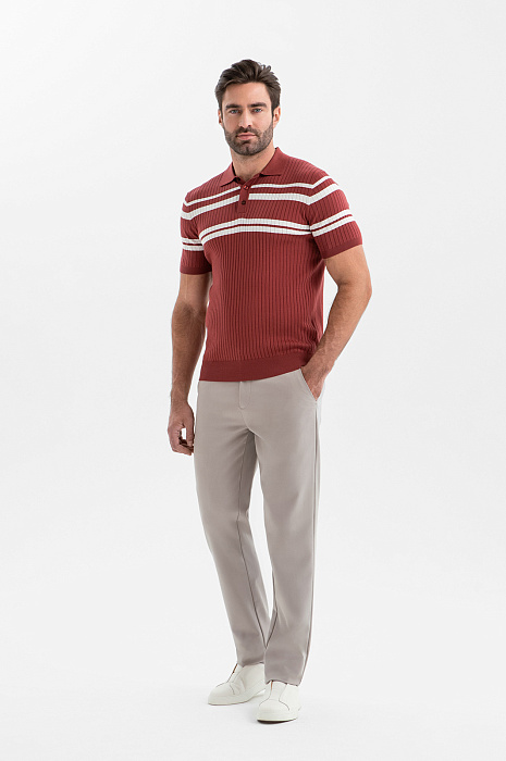 Поло KANZLER бордового оттенка из хлопка Пима — сочетание продуманного комфорта и премиального качества. Широкие белые полоски на груди и рукавах придают модели выразительность и нотку ретро-шика. Рельефный трикотаж спереди добавляет визуальную глубину и ритм. Мягкая эластичная ткань следует за движениями, не нарушая лаконичного силуэта. Дорогой хлопок Пима отличается шелковистой текстурой, лёгкостью и долговечностью. Его тонкие гипоаллергенные волокна берегут естественное тепло и защищают тело от перегревания.