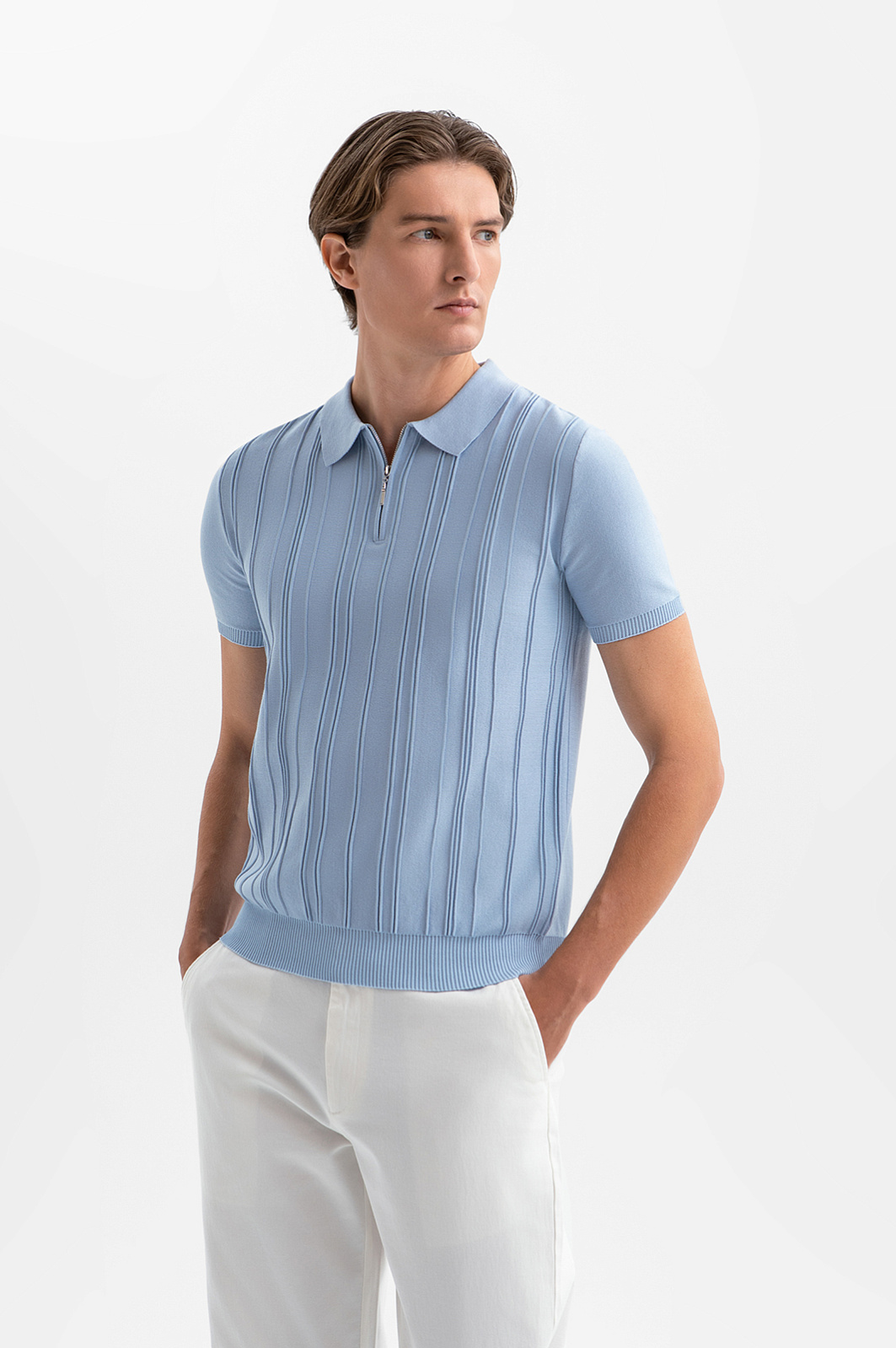 Голубое поло KANZLER из чистого хлопка — обязательная вещь для незабываемого отпуска. Модель органично сочетается с вещами для тёплых дней и служит сезон за сезоном, выдерживая испытание ярким солнцем. Голубой цвет освежает образ и создаёт лёгкое, безоблачное настроение. Рельефная вертикальная полоска спереди задаёт чёткий ритм и визуально вытягивает силуэт. Небольшая застёжка-молния служит акцентом, придавая модели современный вид. Трикотажные резинки мягко фиксируют края. Качественный трикотаж хорошо держит форму даже при активном движении. Воздухопроницаемый гипоаллергенный хлопок (100%) обеспечивает комфорт на протяжении всего дня.