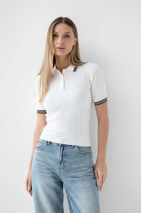 Поло из хлопка, цвет белый, цена 7 990 руб. - купить в интернет-магазине KANZLER