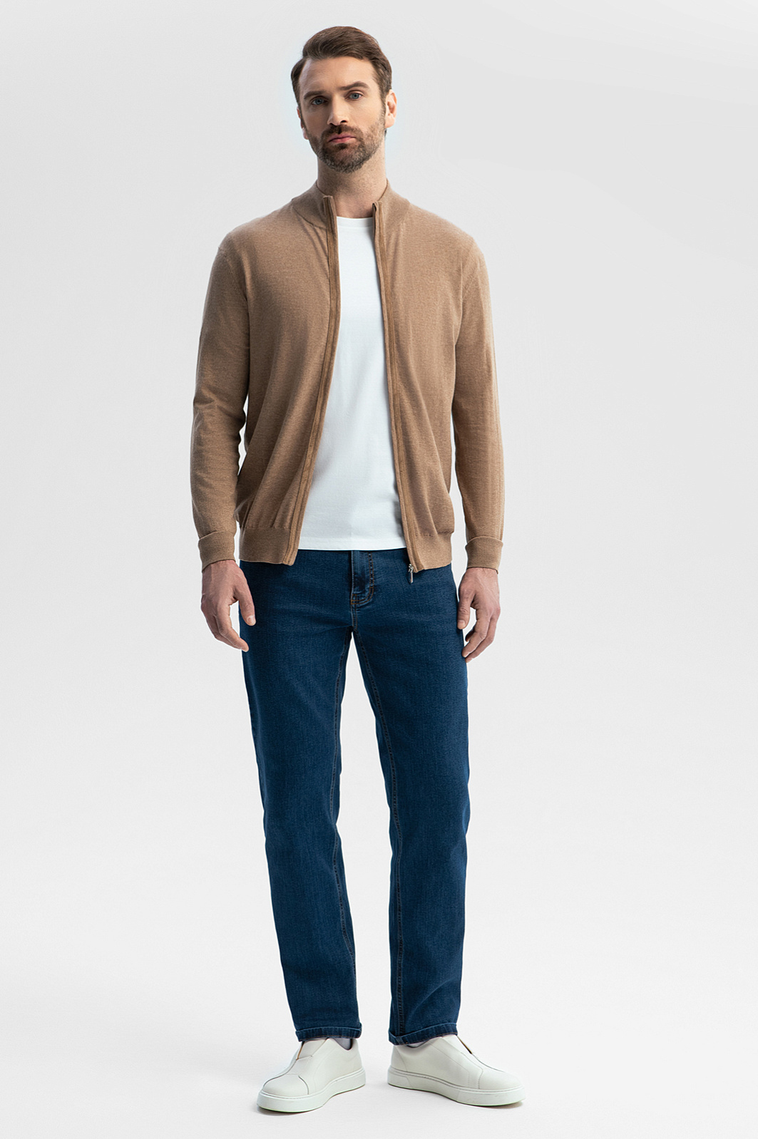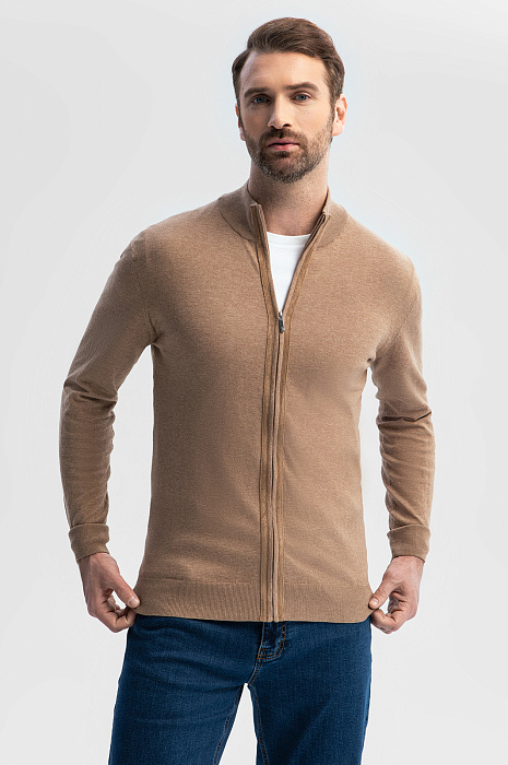 Для создания бежевого кардигана KANZLER выбрали сочетание двух уникальных материалов – органического хлопка Пима и премиальной алькантары с бархатистой фактурой. Тончайший невесомый трикотаж соткан из длинных волокон Пима, что обеспечивает особую прочность, устойчивость к износу и сохранность цвета – все, чтобы изделие радовало своим качеством долгие годы. Застежка-молния декорирована прочной алькантарой, добавляющей образу глубины. Вертикально направленные линии визуально вытягивают силуэт. Мягкий воротник-стойка защищает шею от ветра в прохладный день. Бежевый цвет универсален и легко комбинируется с большинством оттенков, создавая безграничные возможности для стилизации. Параметры модели: рост 189, 102-80-99 Размер на модели: M