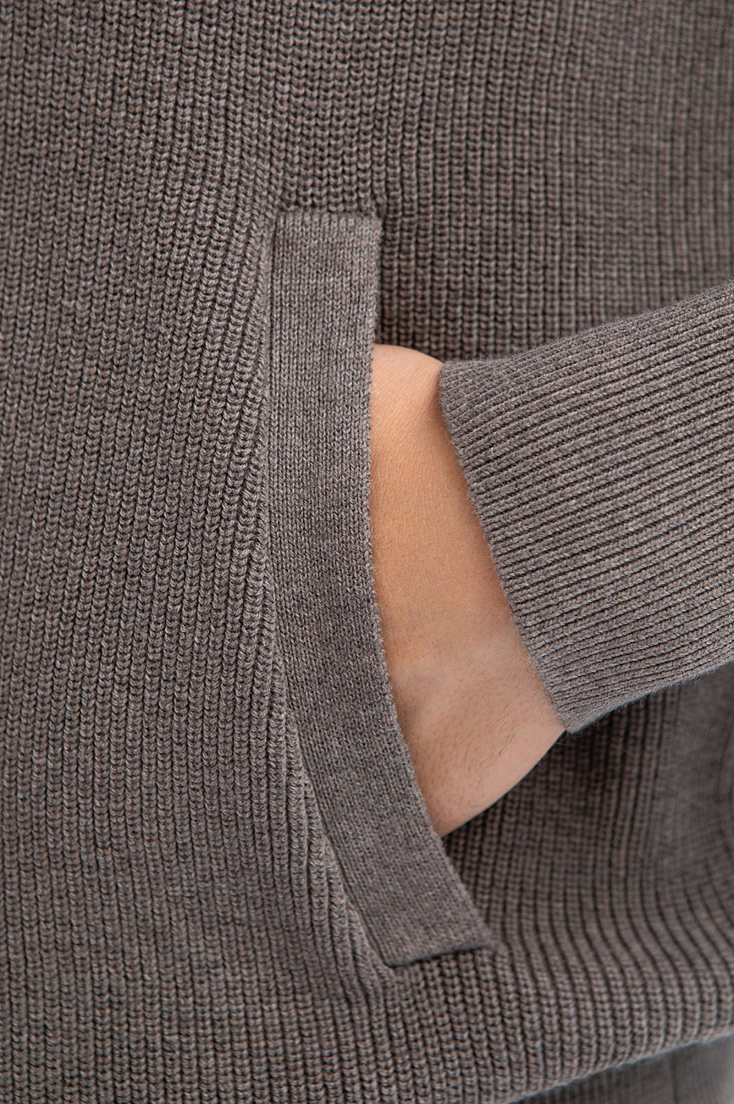 Кардиган KANZLER с капюшоном в изысканном оттенке из хлопка и кашемира — воплощение мужской элегантности в повседневном формате. Удобная универсальная модель будет незаменима в городской среде, на вечерней прогулке у моря и в поездке. Спортивный крой мягко очерчивает контуры фигуры, не ограничивая движений. Лёгкий капюшон из полиэстера с регулируемой резинкой защищает от ветра и дождя. Плотный, но мягкий трикотаж из хлопка с кашемиром — удачное сочетание натуральных гипоаллергенных волокон, которое обеспечивает телу свежесть, терморегуляцию и тактильное удовольствие. Параметры модели: рост 191, 97-77-99 Размер на модели: M