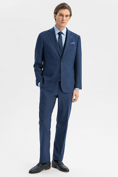 Костюм-тройка из шерсти, хлопка и льна с водоотталкивающей обработкой, цвет синий, цена 48 970 руб., код - купить в Самаре в интернет-магазине KANZLER